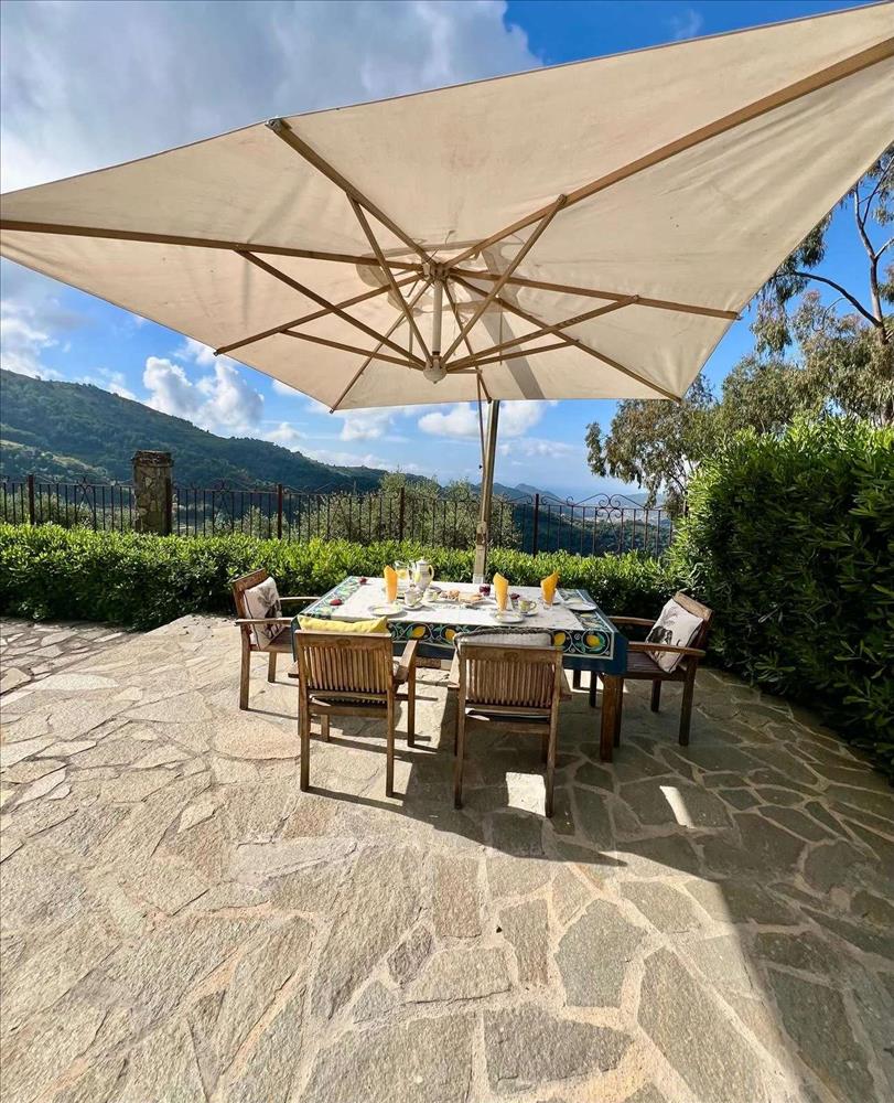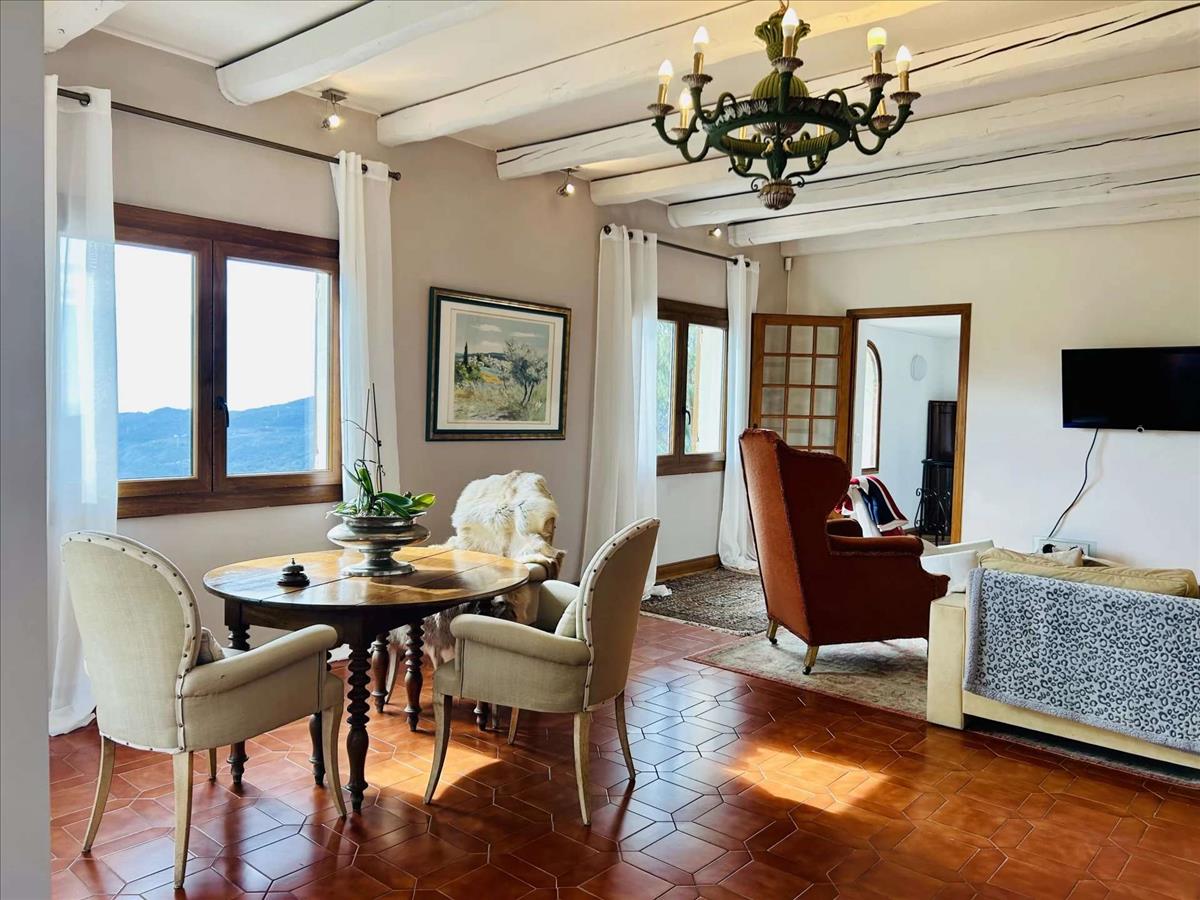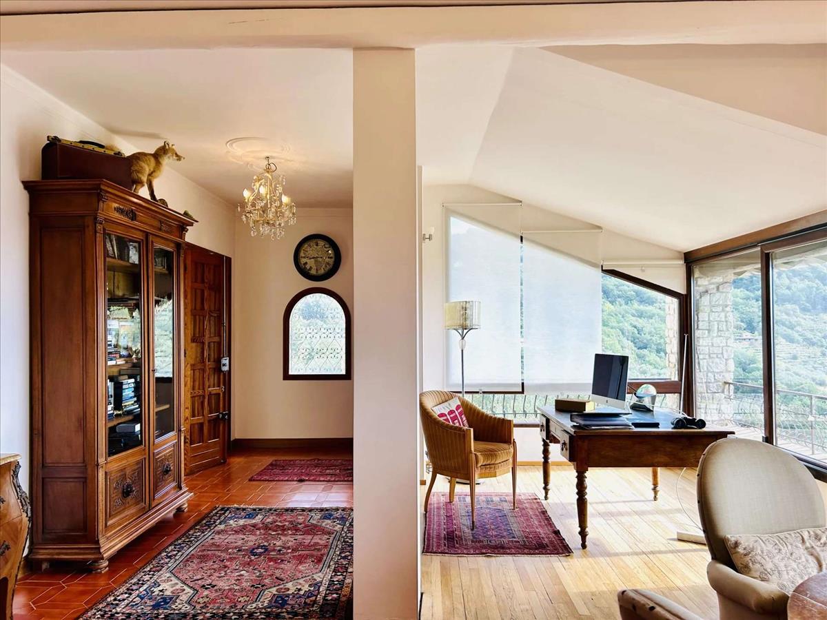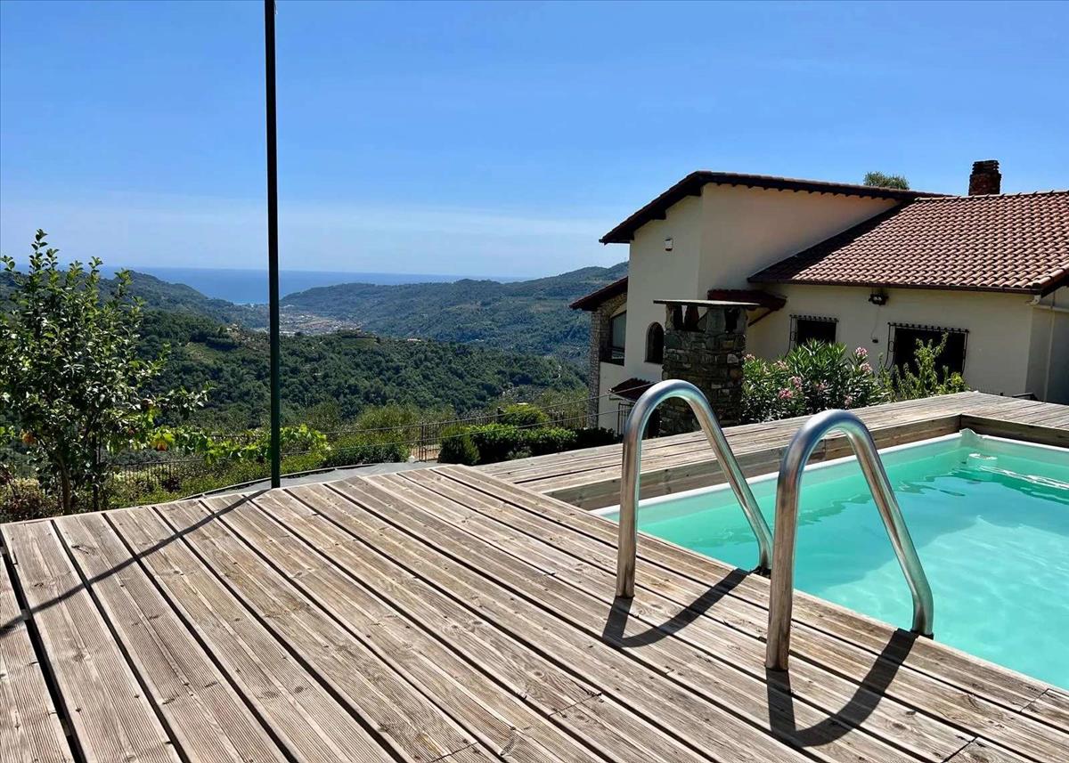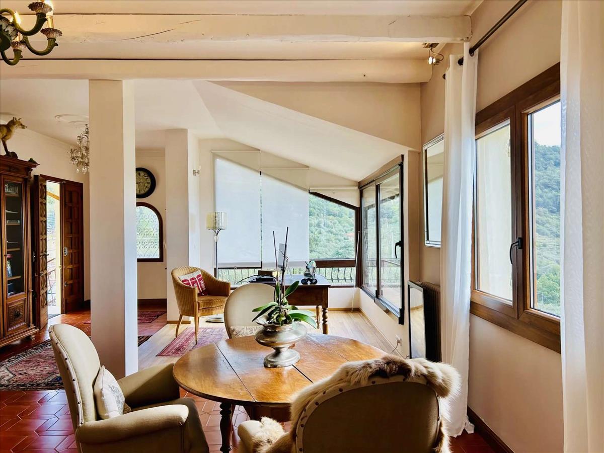 A Dolceacqua fölötti festői dombokon található bájos déli fekvésű ingatlan lélegzetelállító kilátást kínál a völgytől a tengerig. A kb. 200 m²-es ház két szintes spirál lépcsőházzal helyezkedik el, egy kerített kertben, amely 1 172 m²-es, panorámás terasszal és nyugodt sarkokkal rendelkezik.
