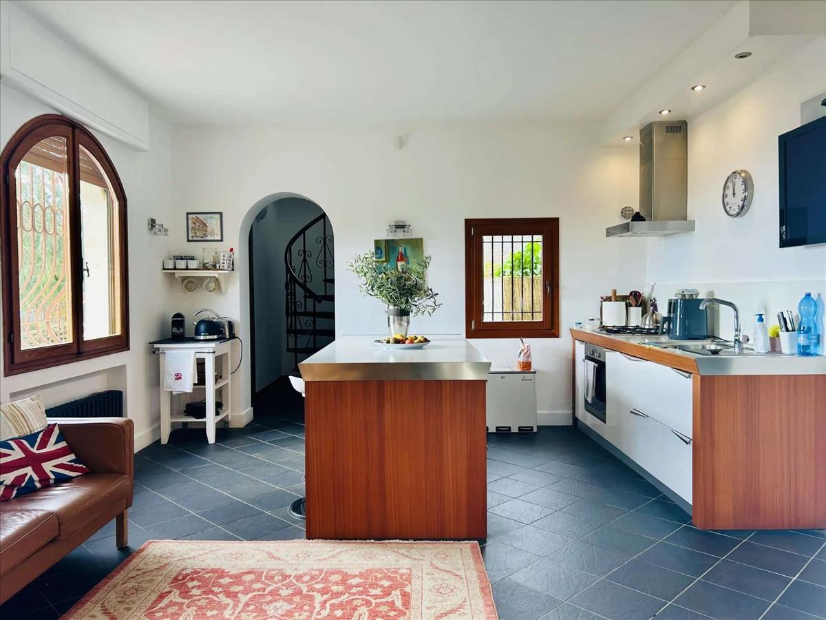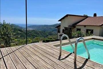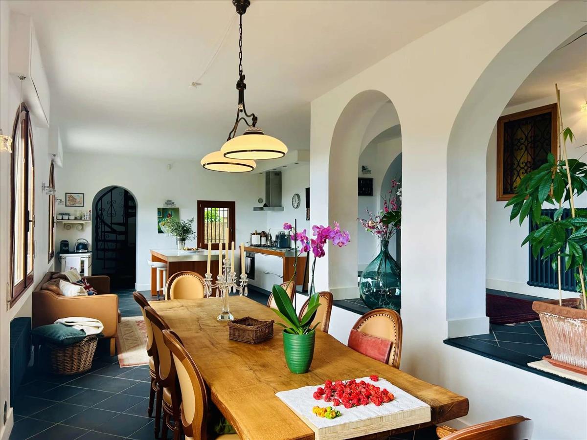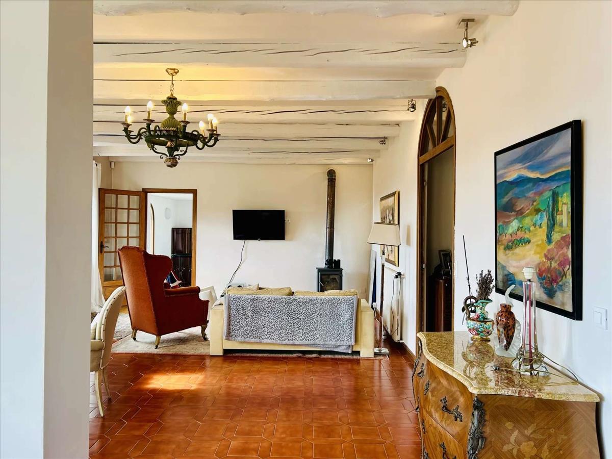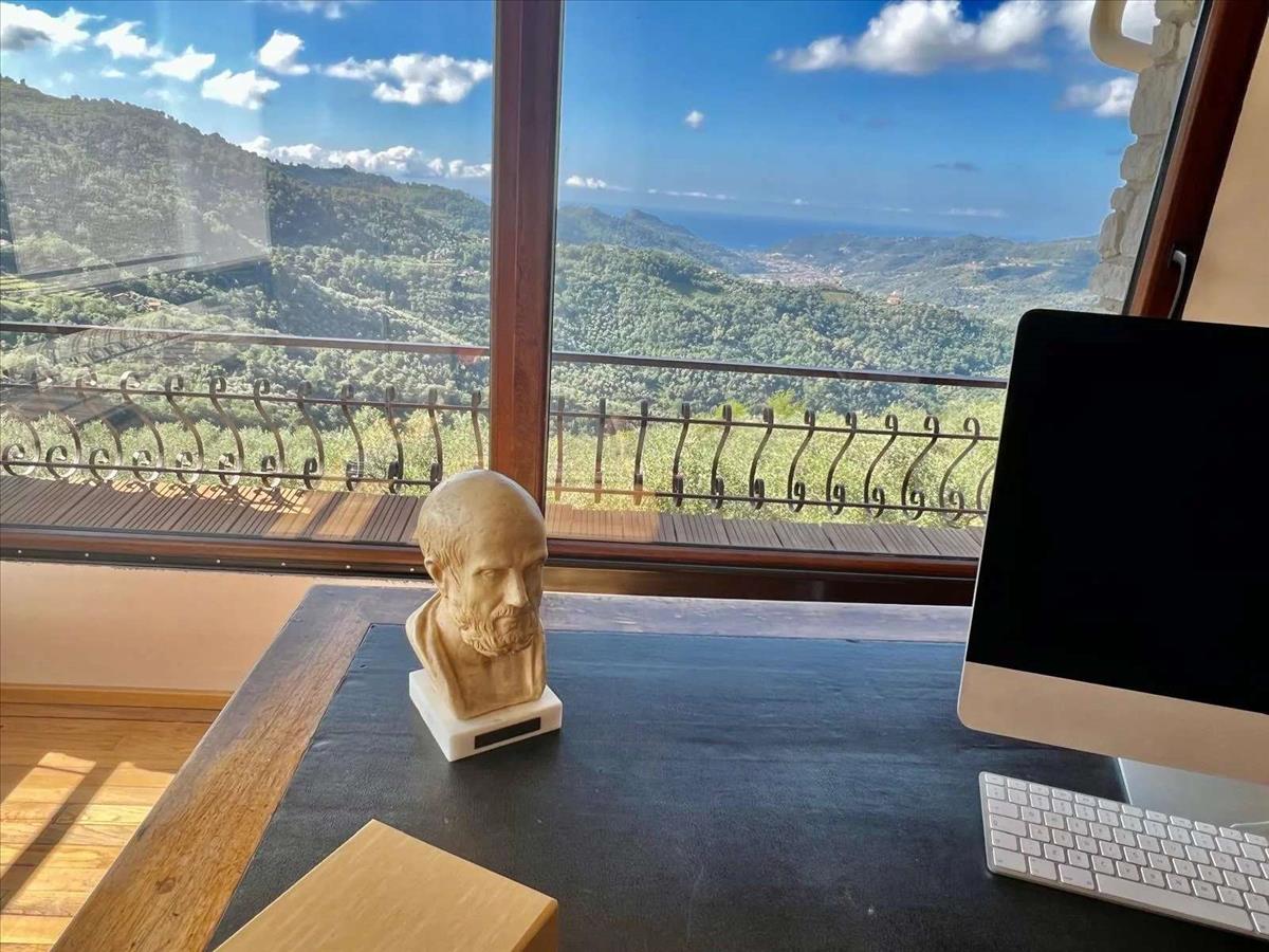 A Dolceacqua fölötti festői dombokon található bájos déli fekvésű ingatlan lélegzetelállító kilátást kínál a völgytől a tengerig. A kb. 200 m²-es ház két szintes spirál lépcsőházzal helyezkedik el, egy kerített kertben, amely 1 172 m²-es, panorámás terasszal és nyugodt sarkokkal rendelkezik.