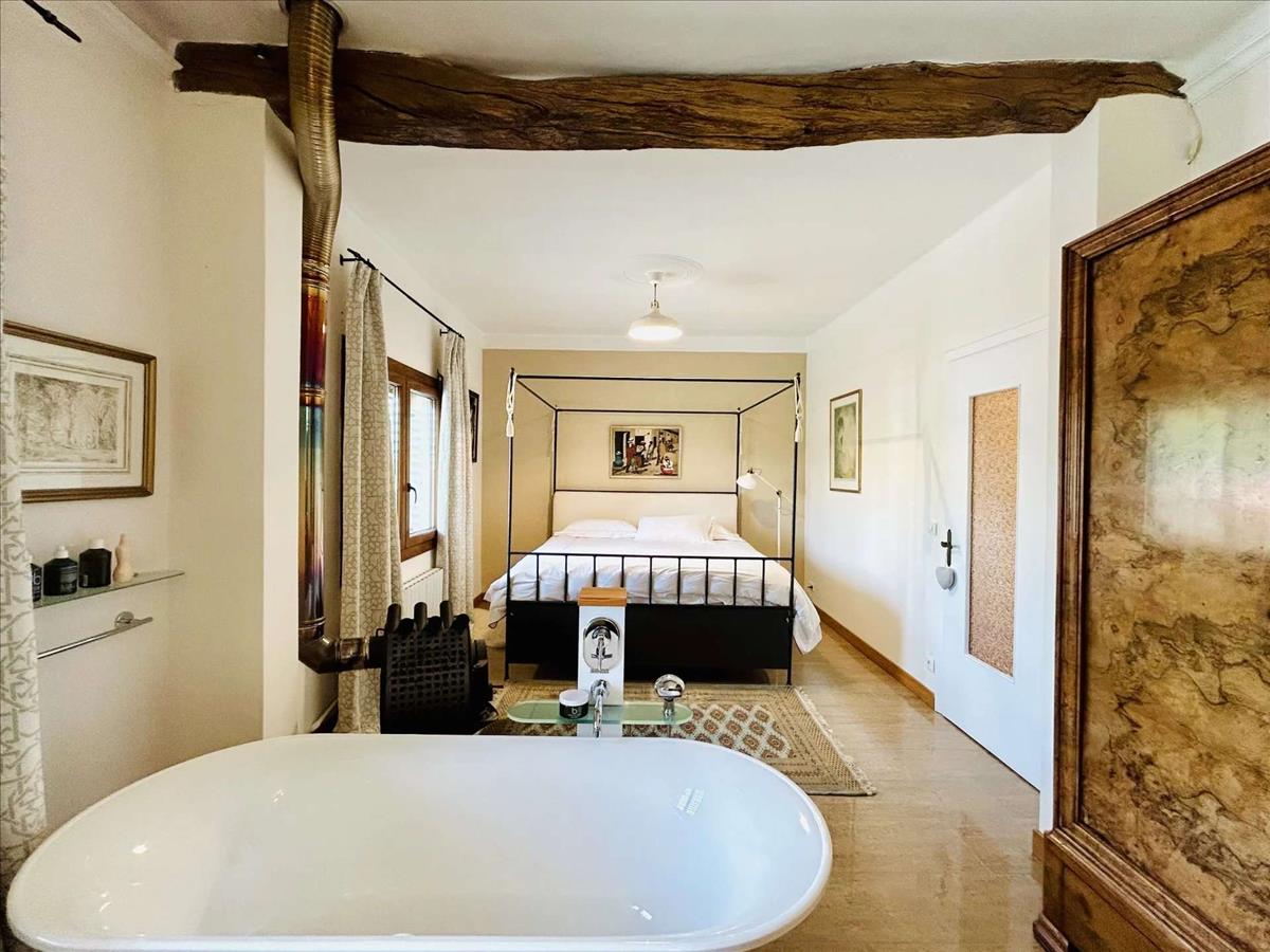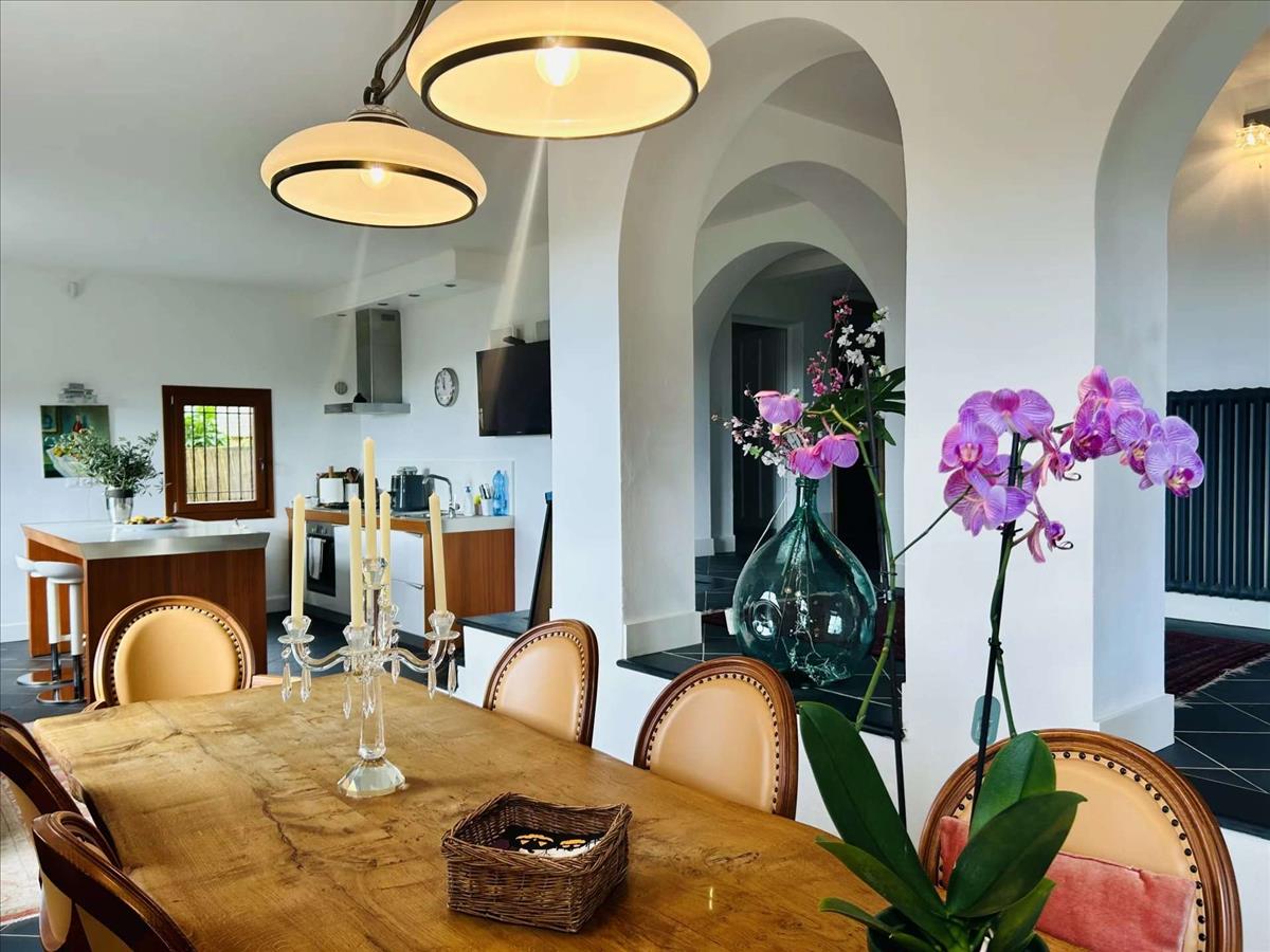 Földszinten egy üdvözlő, nyílt terű konyha és étkező található, tökéletes hely a család és a barátok szórakoztatására. Ez a szint magába foglalja a fürdőszobát, mosókonyhát, borospincét és két praktikus tárolót. A kert teraszos, jellegzetes kőfalakkal körülvett magasabb szinteken van kialakítva, és varázslatos helyet kínál a környező vidék szépségéhez. Itt található egy kis 10 m³-es medence, amely tökéletes a nyári lehűlésre, míg a fa tüzelésű pizza sütő és grillezési terület az együtt töltött estékre ideális.