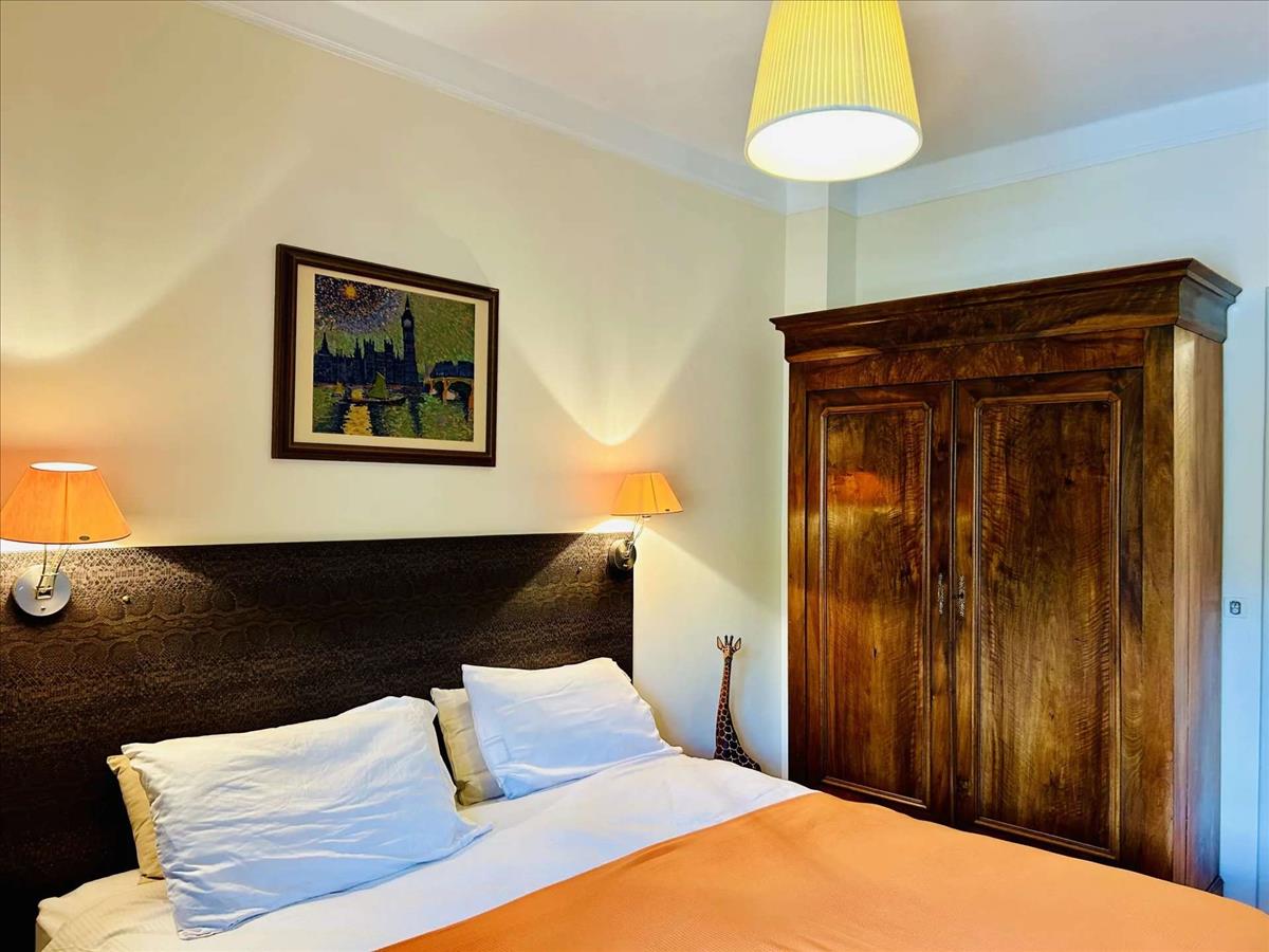 Az első emeleten a bejárat egy világos, tágas, 60 m²-es nappalira nyílik, ideális kikapcsolódáshoz, kényelmes iroda sarokkal. Ezen az emeleten három kétágyas hálószoba található, közülük az egyik saját fürdőszobával, és egy második fürdőszoba zuhanyzóval. Az egész emeletről közvetlen hozzáférés van a kerthez.