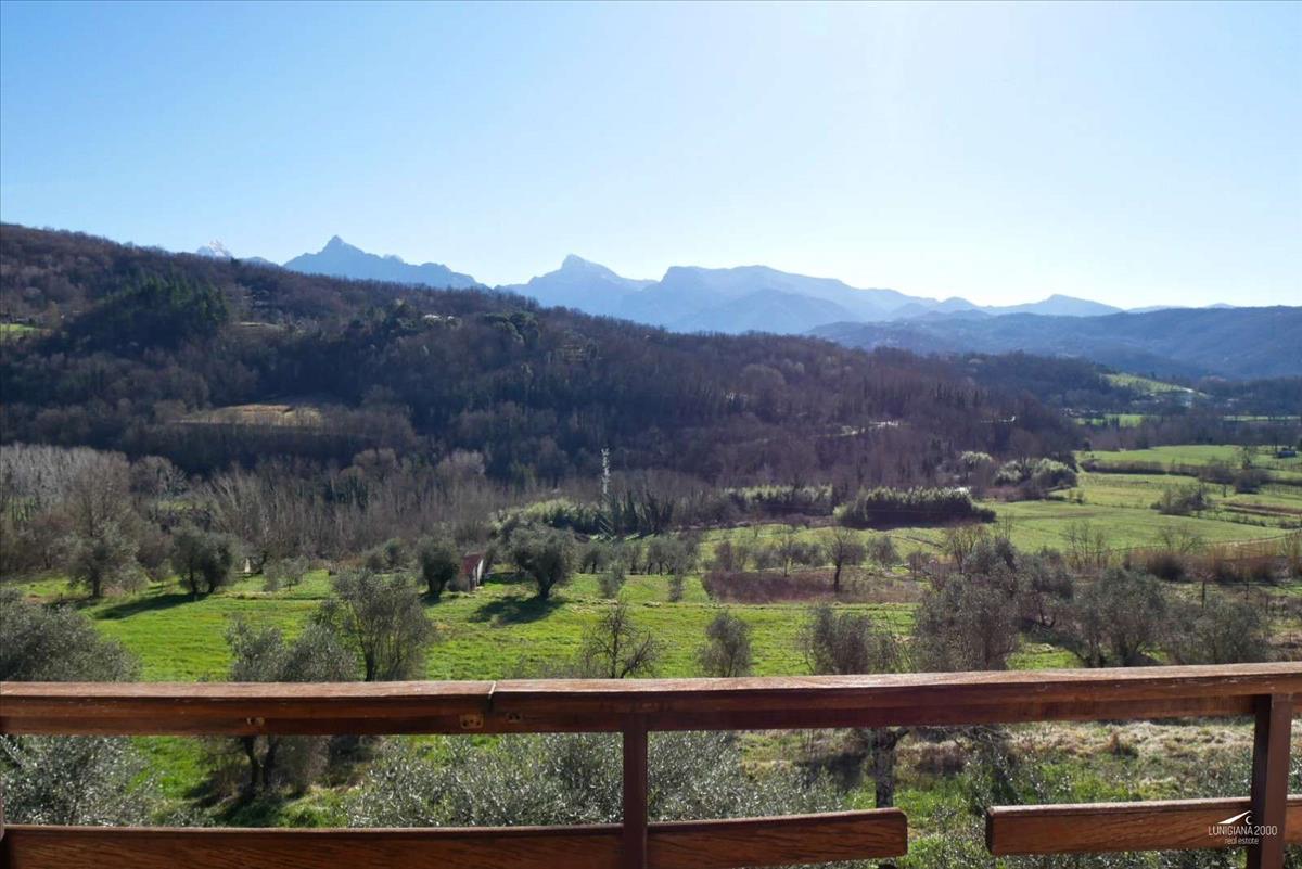 Szabadon álló villa kerttel, udvarral és garázzsal, egy bájos faluban, domboldalon és napos pozícióban, csodálatos kilátással a fenséges Apuan Alpokra.