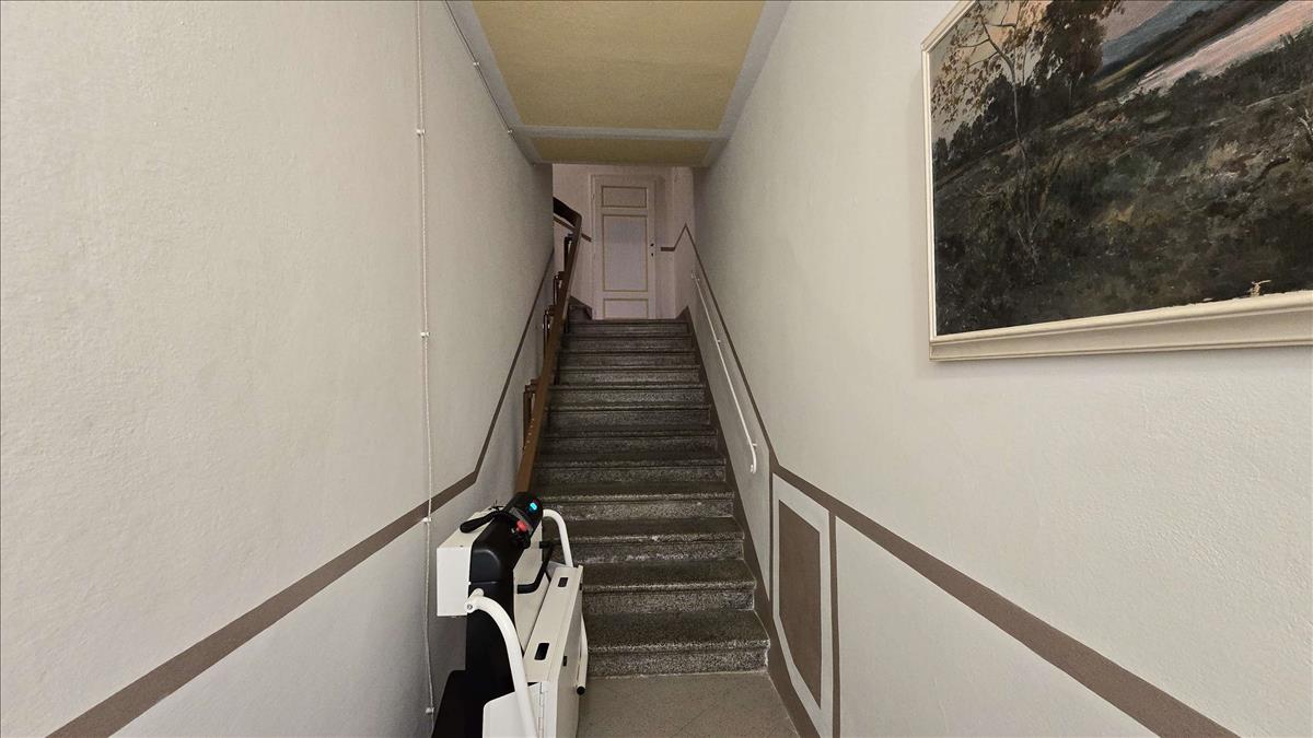 Az apartmanok bejárata a főutcáról nyílik egy közös folyosóról és lépcsőn keresztül, egy legújabb generációs teherlifttel.