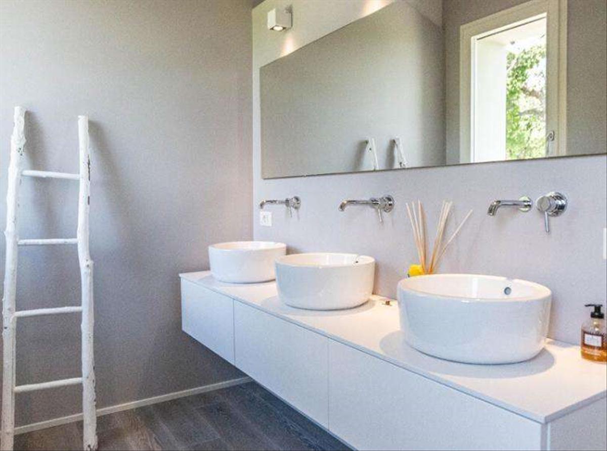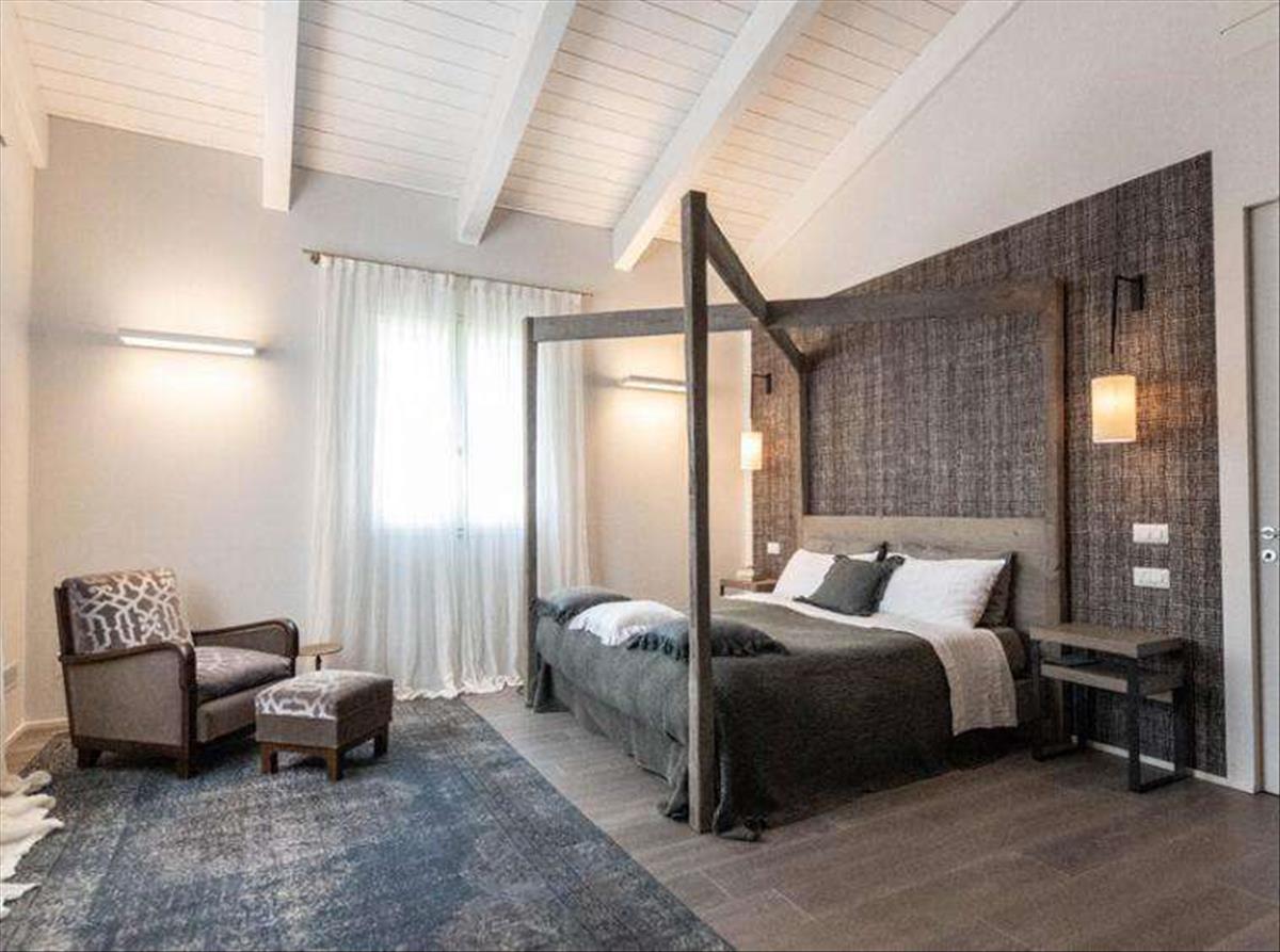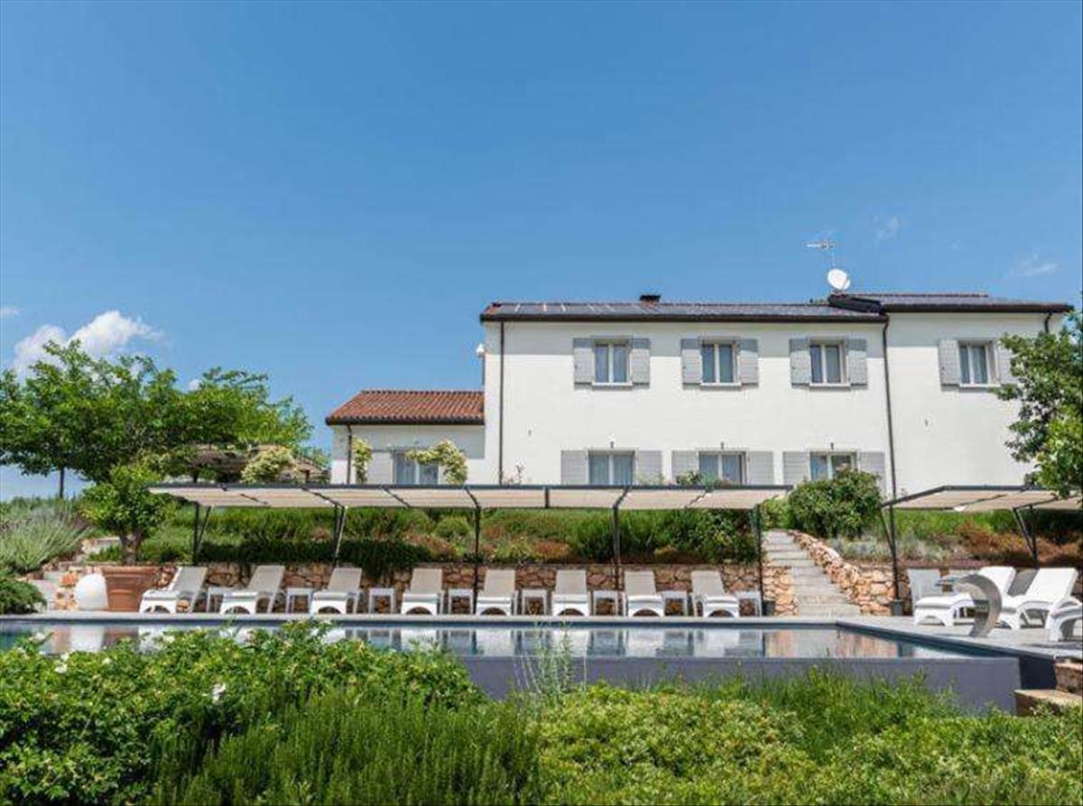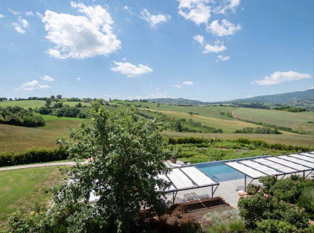 Ez a luxus villa egy hihetetlenül különleges, 5 hálószobás családi ház, 555 m². A hely a marchigiano gördülő dombok között található. Jelenlegi tulajdonosai jelentős felújítást végeztek mind a házon, mind a kerteken, hogy neked szenzációs családi otthont adjanak, amely olyan, mint egy nagy vidéki ház, és minden kényelmet biztosít, amit csak el tudsz képzelni. A panorámás végtelen medence, a beltéri medence, a szauna, a török fürdő és az otthoni mozi is része.