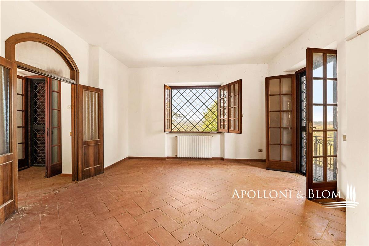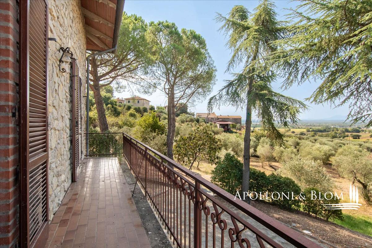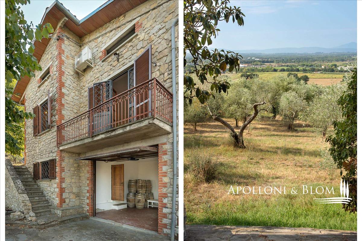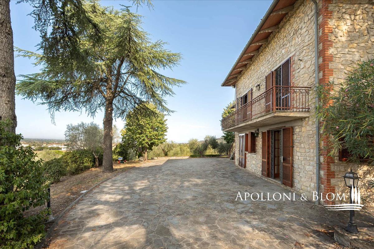 Kővilla négy hálószobás, légkondicionált, napelemekkel felszerelt, két hektár földdel és olajfaligettel eladó Cortona közelében. A hely a Val di Chiana vidékén, a Trasimeno-tónál és Cortona középkori városának közelében található, egy kellemes, domináns környezetben.