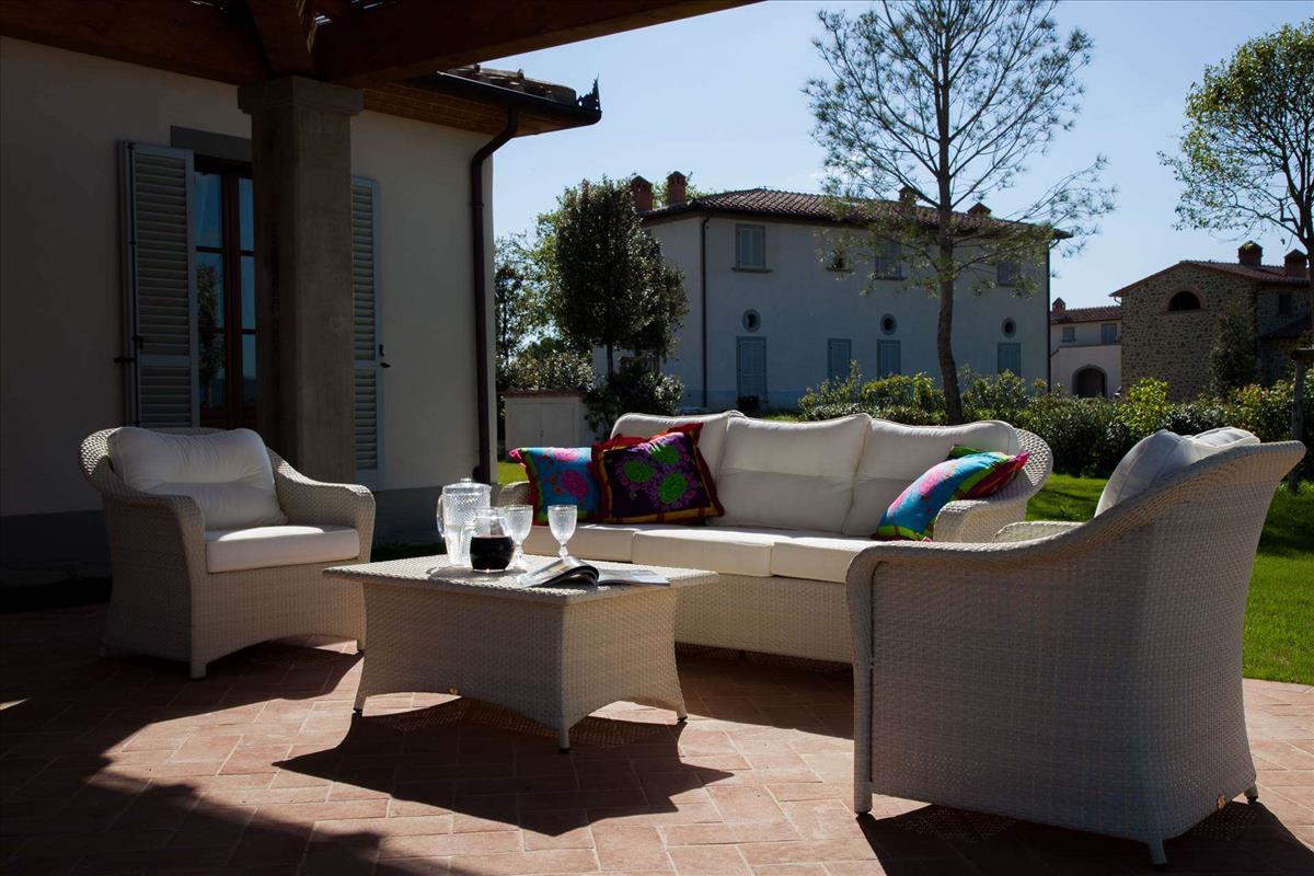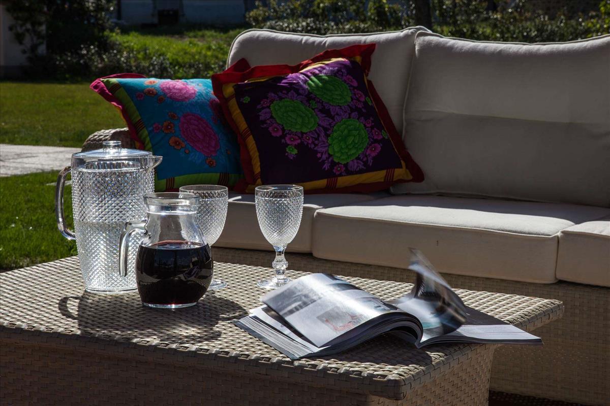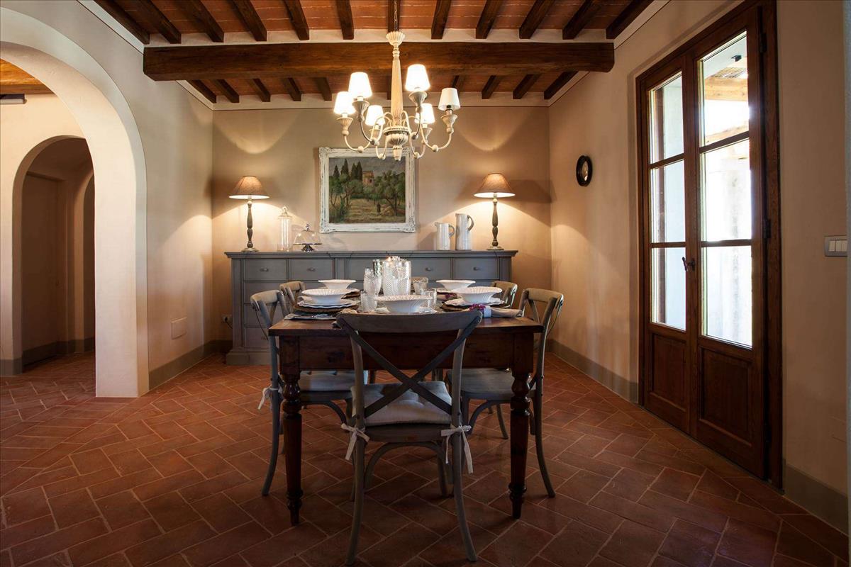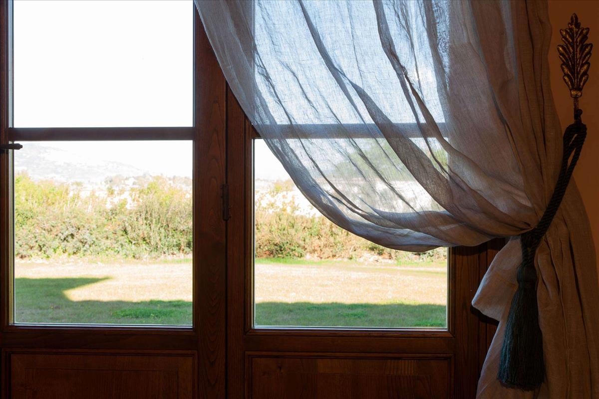 A földszinti bejárati tornác elegáns, rusztikus stílusú szobákba nyílik, kivehető fából készült gerendákkal, ívelt ajtókkal, terrakotta padlókkal, melyeket helyi kemencékből készítettek.