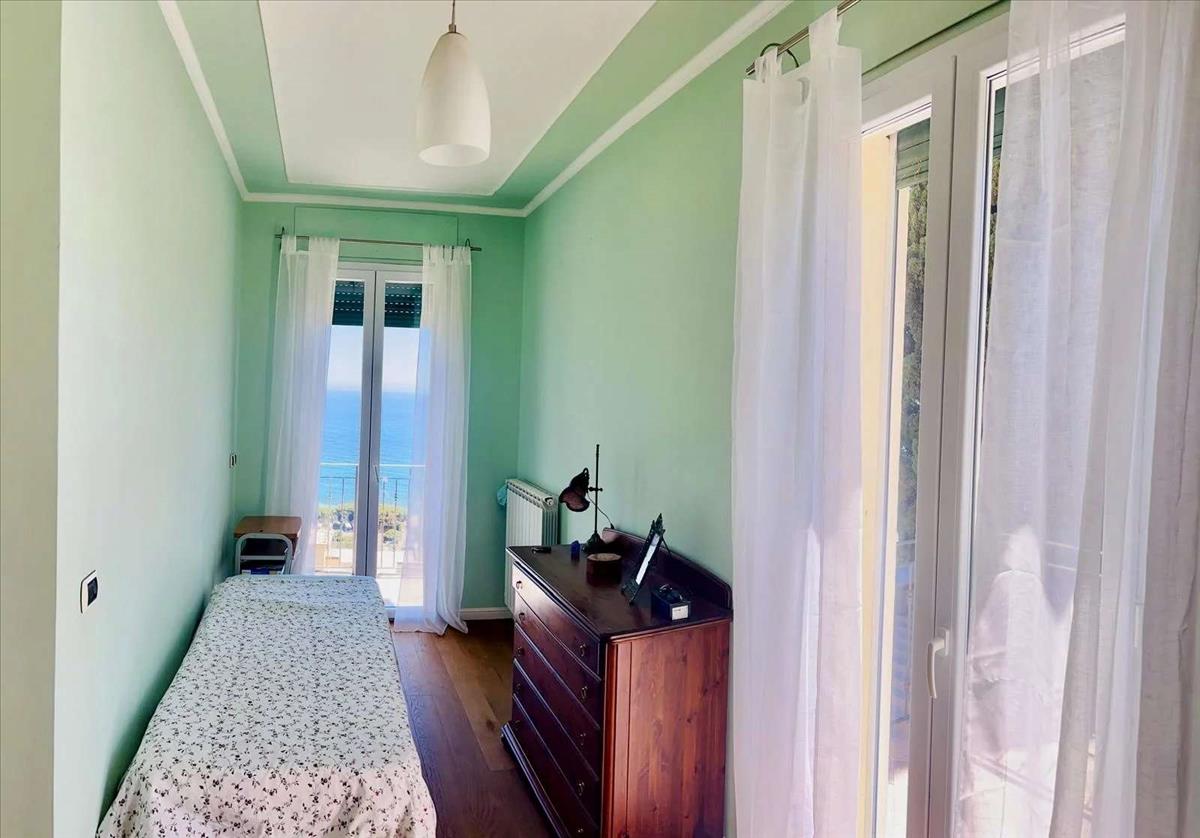 Az első emeleten található egy tágas hálószoba, egy sokoldalú egyágyas hálószoba, egy erkély, amely a tengerre és a kertre nyújt kilátást, és egy jól felszerelt fürdőszoba található.