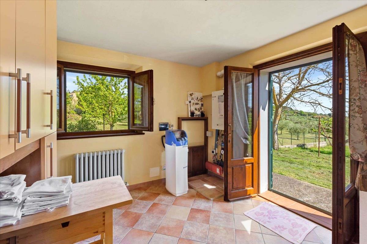 Az ingatlan kétszintes, a padlást is magába foglalja, és körülkerített kertje 12 olajfával rendelkezik.
