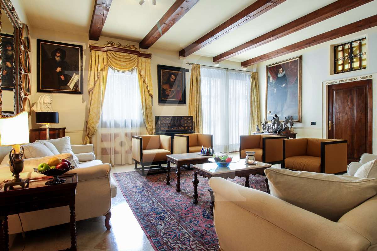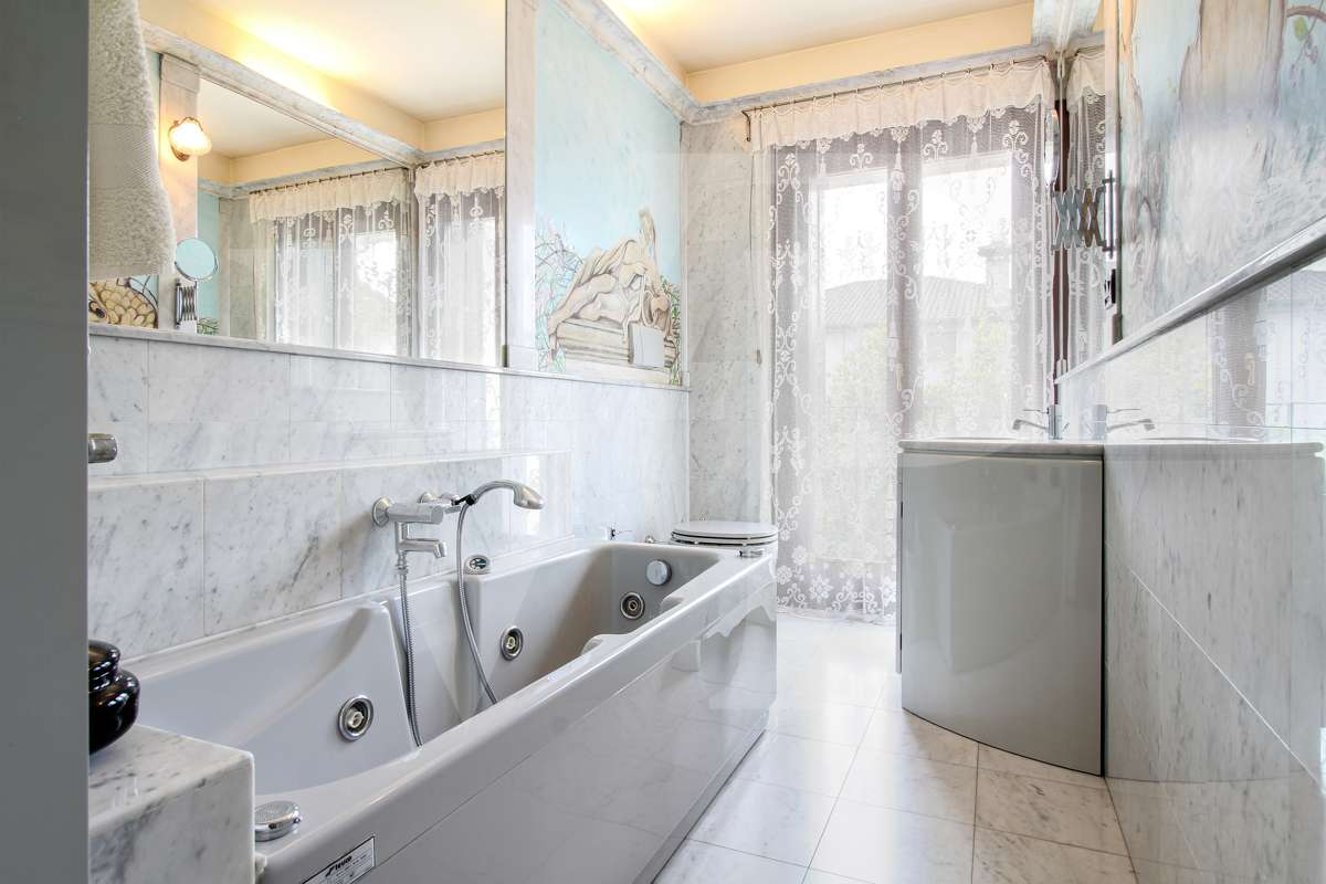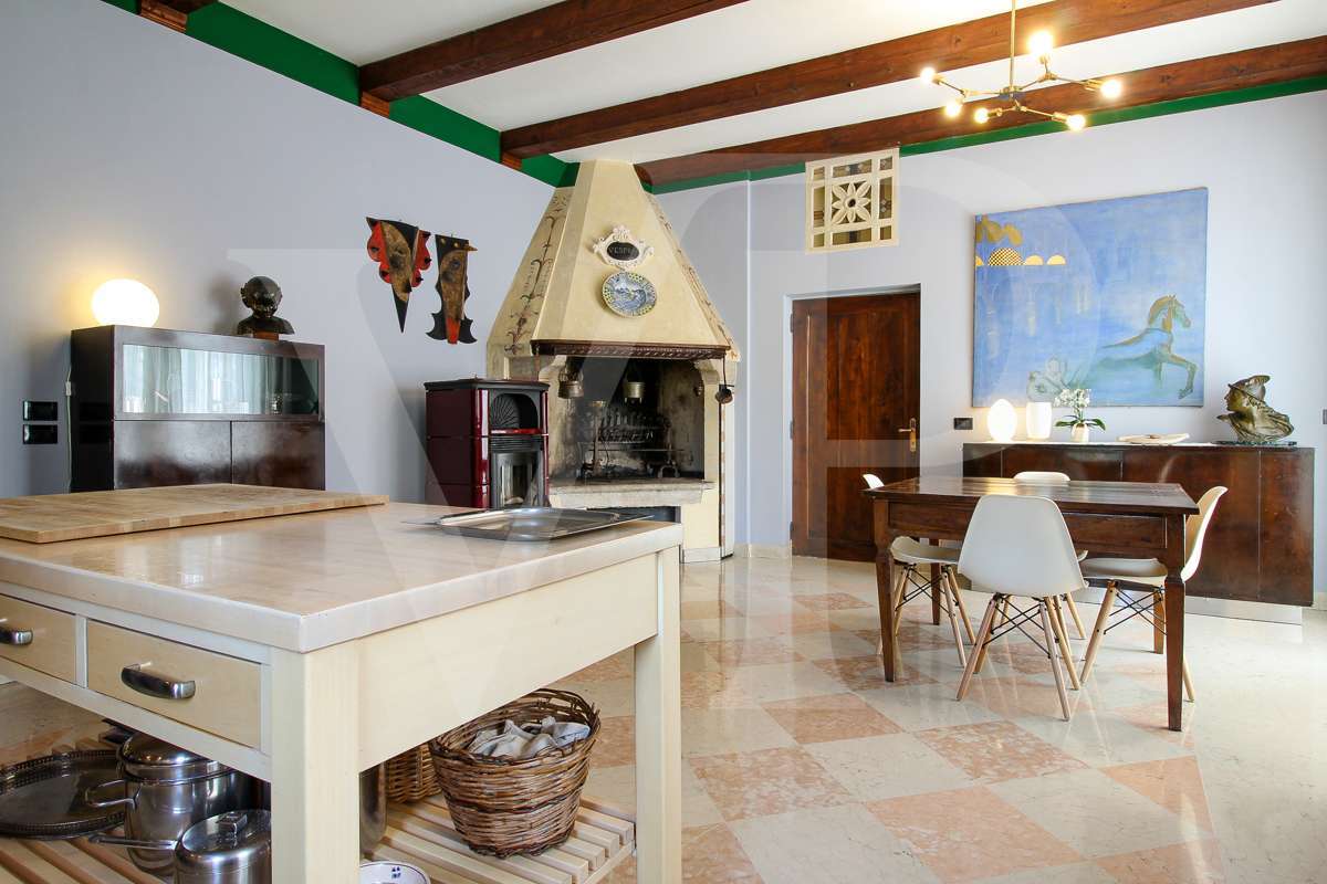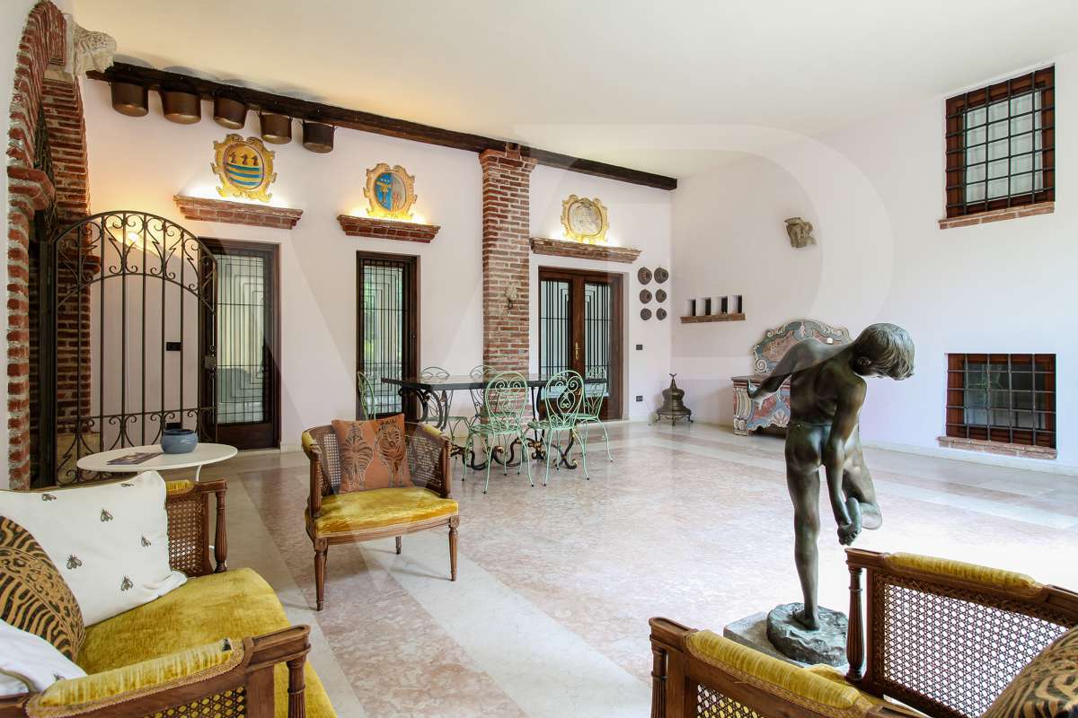 A villa főbejárati ajtajától láthatók azok a részletek, amelyeket a felújítás során felhasználtak: a padló, a falak és a fürdőszobák stílusa, az antik ajtók, valamint a gazdag freskók, amelyek az ingatlan ragyogását és nemességét adják.