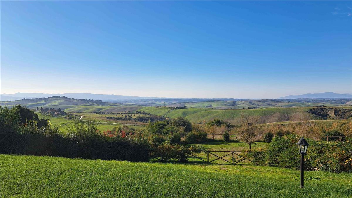 Ez a kivételes ingatlan közös úszómedencével rendelkezik, amely csodálatos panorámás kilátást nyújt a környező vidékre és Volterra etruszk városára.