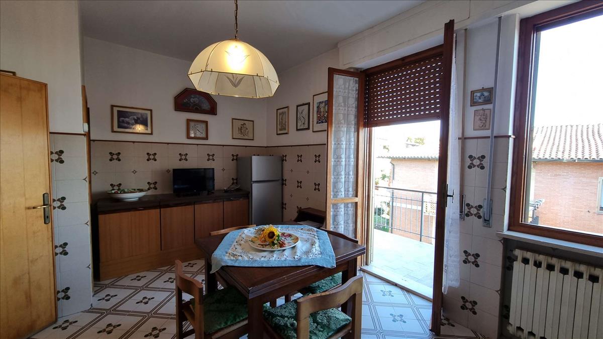 Volterra első külvárosában van egy harmadik emeleti lakás, egy 9 családos társasházban, exkluzív garázzsal.