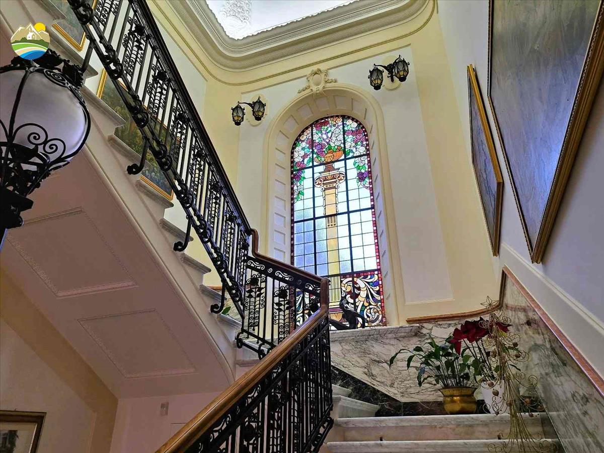 A polikróm ablakok és a többrepülős márvány lépcsőház, a kézzel kovácsolt vaskorlát, az értékes stukkók, freskók, velencei padló, a márvány mozaik, a festmények és szobrok mindenütt a lélekben a kellemes és nemes érzést keltik. A művészet ezt adhatja.