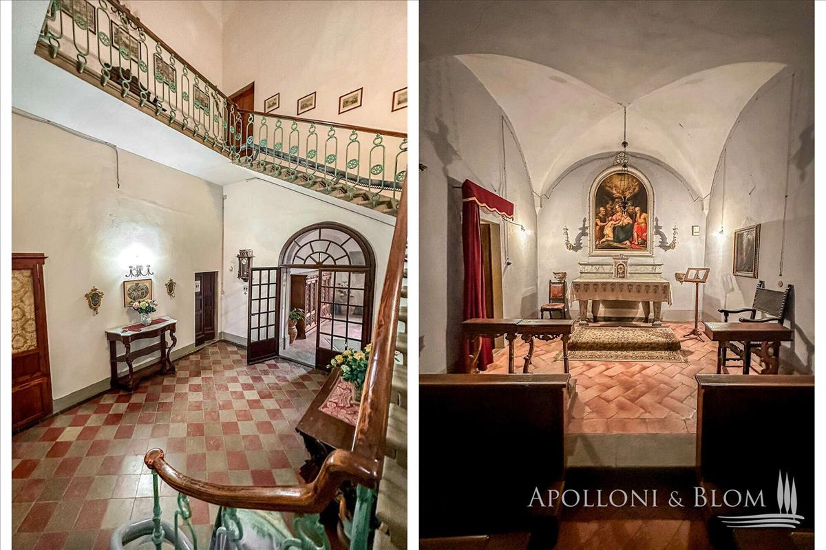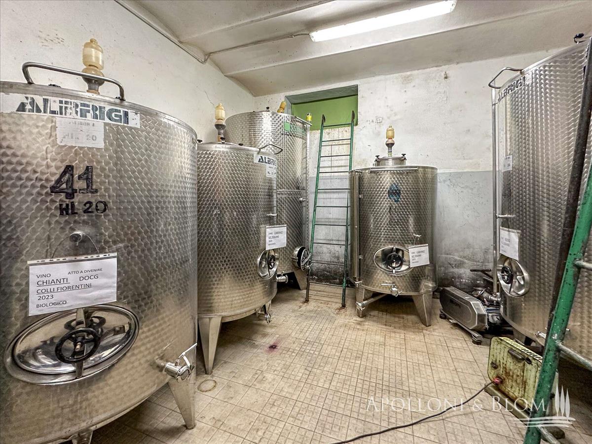 17. századi kastély kápolnával, 160 hektáros szerves farm Chianti DOCG szőlőültetvények, olajfaligetek, borászat és olajgyár eladó Firenzében.