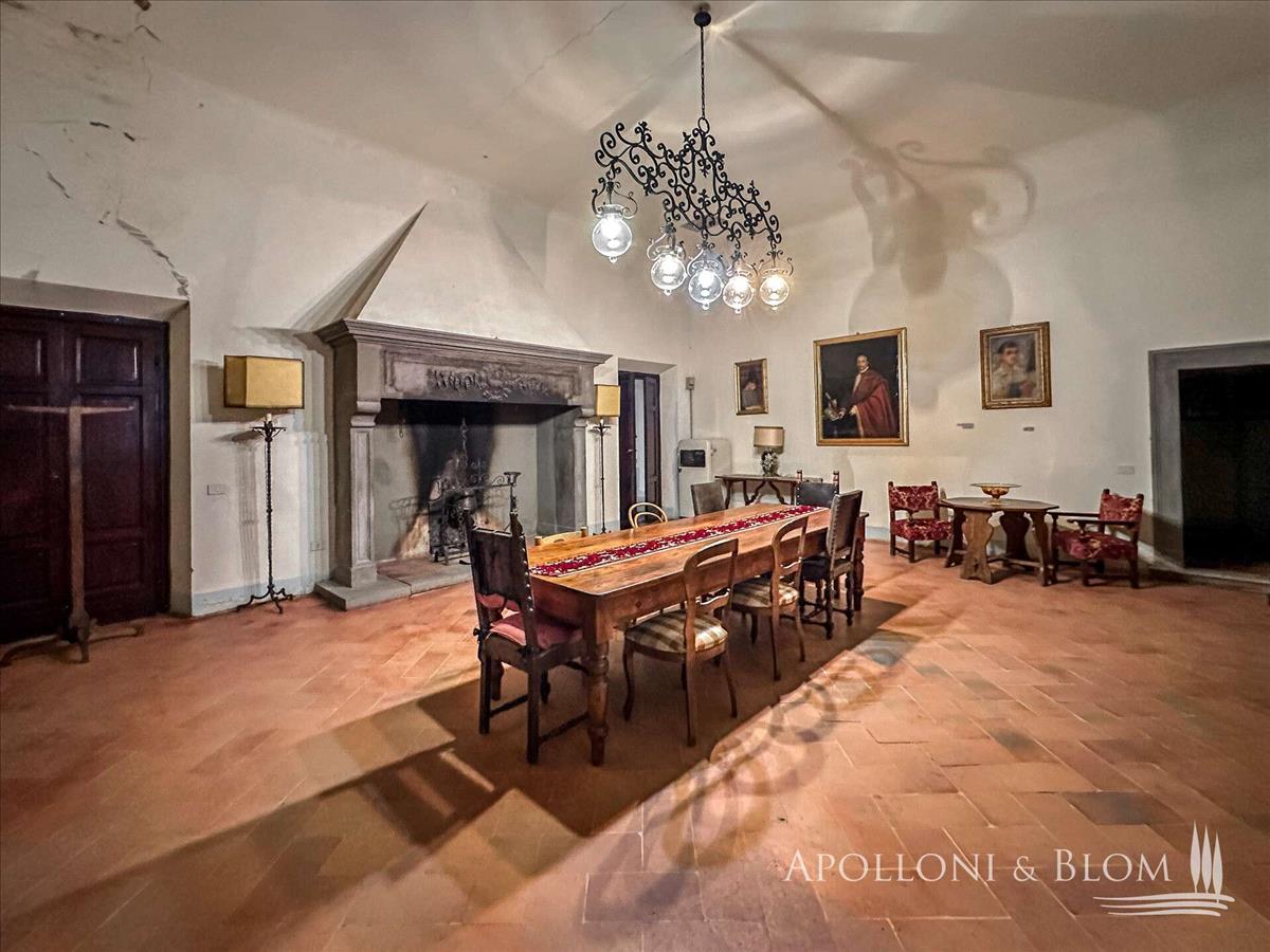 A belső terek fenségesek, a mennyezetek több mint 4 méter magasak, kivilágított fa gerendákkal, egy nagy előcsarnokot központi travertin lépcsőházzal és kovácsoltvas korláttal, egy fő fogadószobát kőkandallóval, boltíveket, egy privát kápolnát az 1700-as években, öt kétágyas hálószoba az első emeleten, nagy lehetőségekkel a további szobák átalakítására.