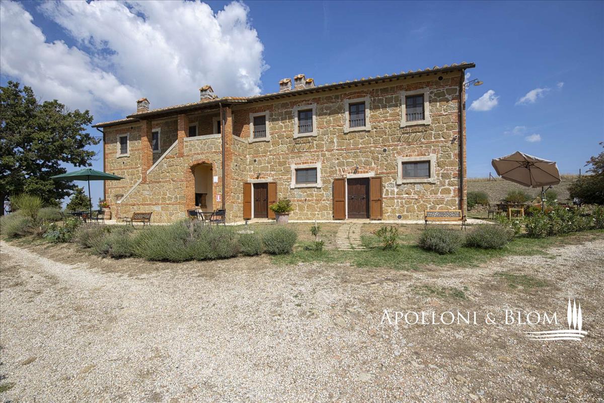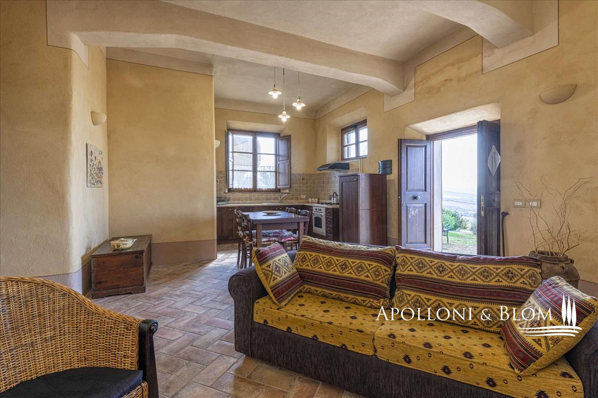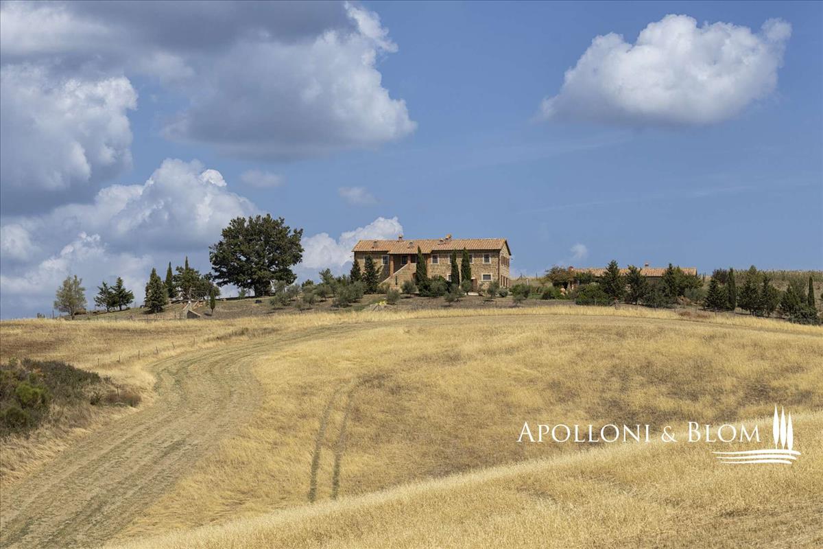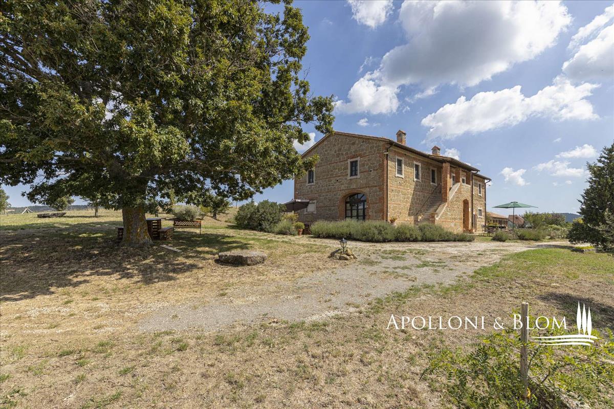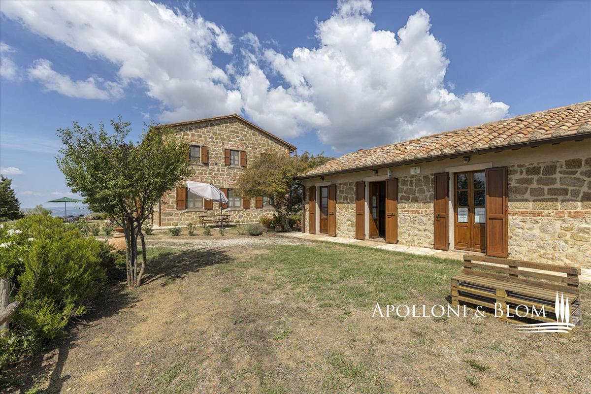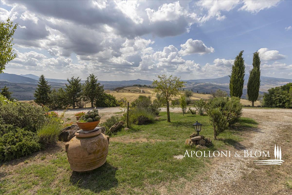 Panorámás vidéki stílusú ház tágas kilátással a Val d'Orcia völgyére, felújított légkondicionálóval, melléképülettel és kerített kerttel, eladó Pienza, Siena. Val d'Orcia szívében, az egyik legszebb toszkán dombon, 360 fokos kilátás nyílik a völgyre. A parasztház UNESCO világörökségi területen, gyönyörű természetvédelmi környezetben található. Nem messze az ősi falutól, Pienza, az ingatlan egy tipikus fehér út mentén érhető el, finom kanyarokkal és ciprusokkal.