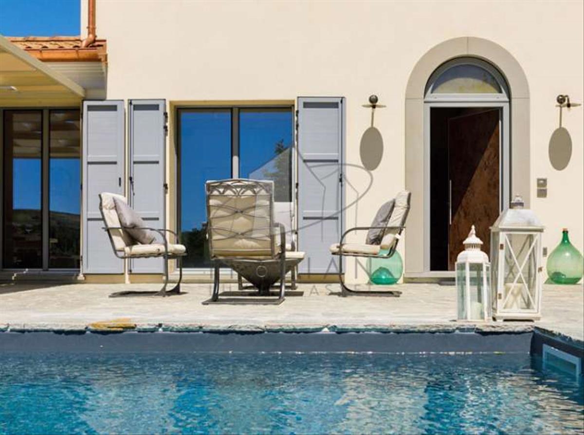 Panorámás úszómedence és buja területek tökéletesen kiegészítik a kifinomult vidéki élet idillikus képét.
