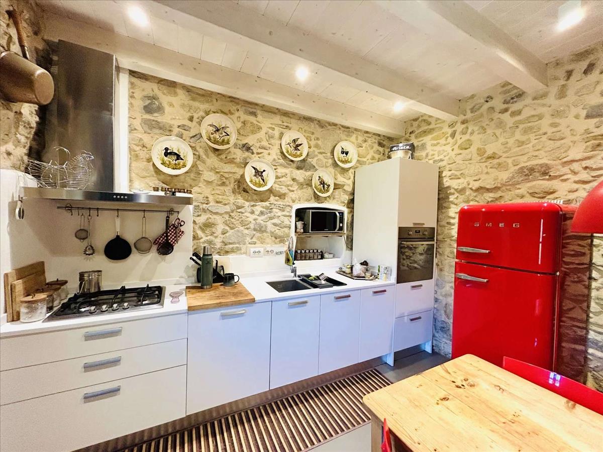 Ez a ház 2018-ban befejezett teljes felújítás és bővítés eredménye. Ez a felújítás egy régi parasztházat stílusos és barátságos lakóhellyé alakított. Az ingatlan kiváló állapotban van. A rusztikus báj a modern dizájnnal és a természetes kő elemeivel ötvöződik. A padlót mikrocementtel borították. Dizáner bútorzat található. Kiváló minőségű befejezések jellemzik. Mindez a környező dombok panorámás kilátásai által erősödik.