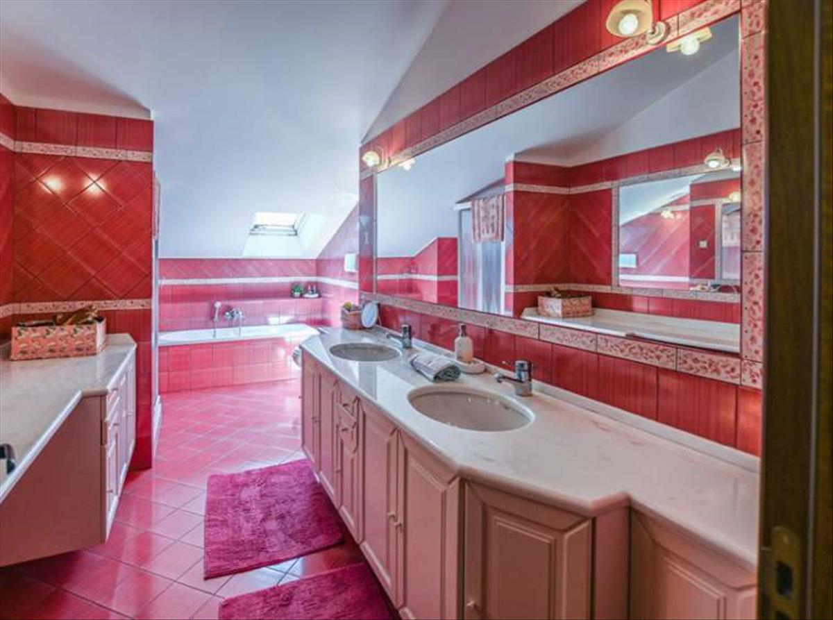 Egy nagyvonalú, 581 m²-es villa, amely a gondos kézművesség és a figyelmes tervezés örökségét hordozza, három szinten helyezkedik el. Földszint: Lépj be a rejtett luxus világába, miközben a tornácra lépsz, amely a lakás szívéhez vezet — egy tágas nappali római travertin kandallóval és nagy ablakaival, amelyek a szabadban rejlő szépséget hívják elő. Innen érkezik az elegáns étkező, amely intim vacorákhoz vagy nagy összejövetelekhez ideális. Ez zökkenőmentesen kapcsolódik egy ínyenc konyhához, amelyet egy impozáns kandalló díszít, és amely a legmodernebb készülékekkel van felszerelve. A konyha mellett egy tágas kamra található, mögötte pedig egy irodaterem biztosít otthoni munkához vagy vendégfogadáshoz. Ezen az emeleten egy tágas tárolóhelyiség és két fürdőszoba található.