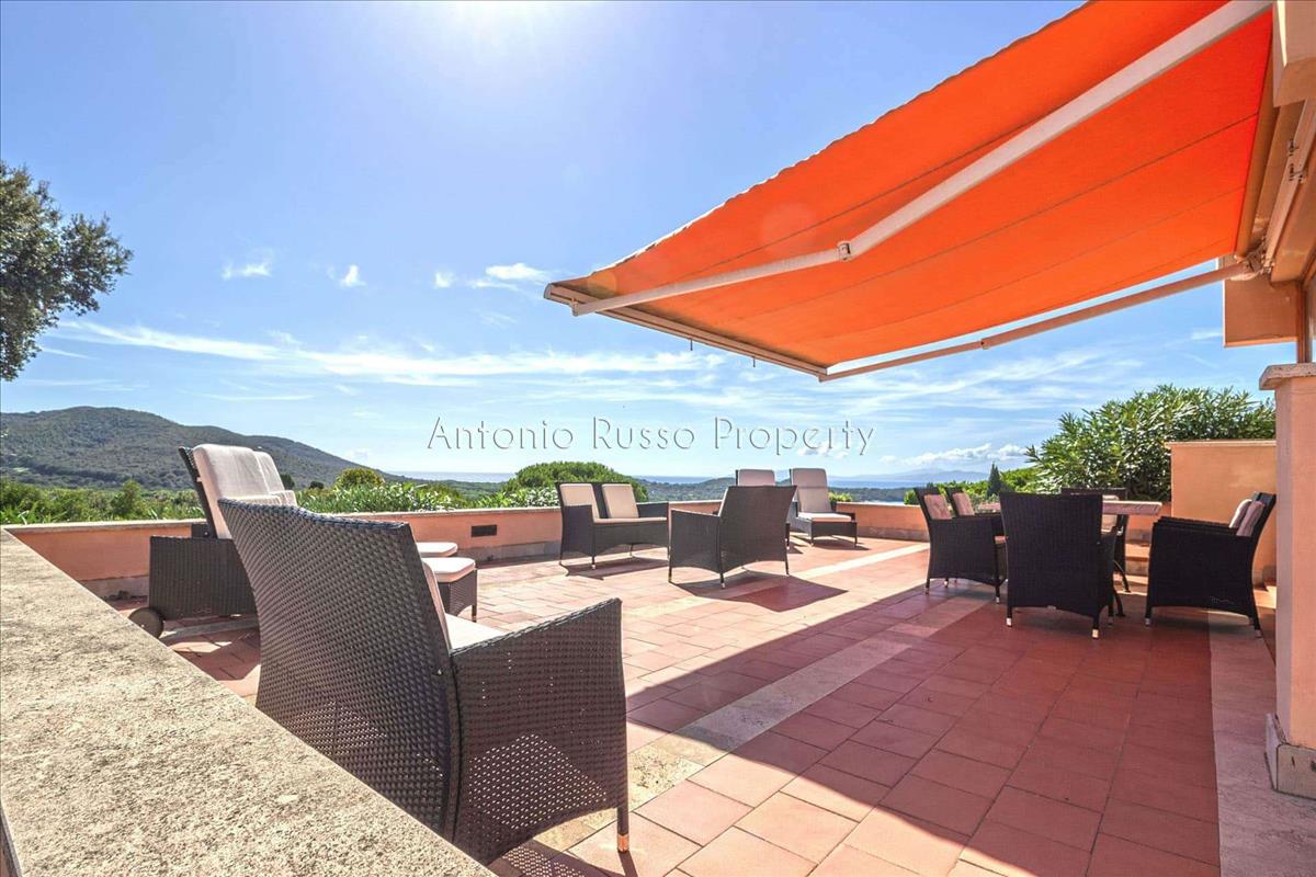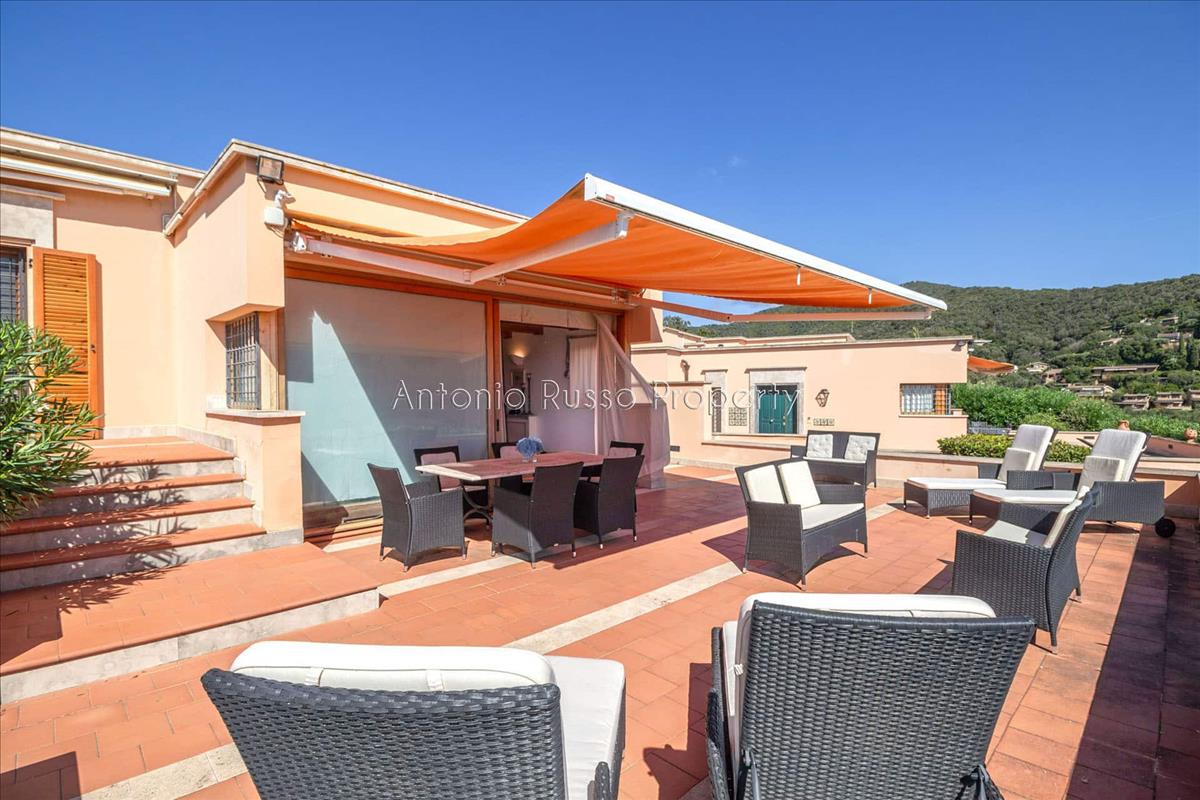 Az eladó villa jellegzetes nagy panoráma terasza a ház igazi szívét képezi, ahonnan lélegzetelállító naplementét élvezhetsz a tenger felett és az Elba-sziget felett.