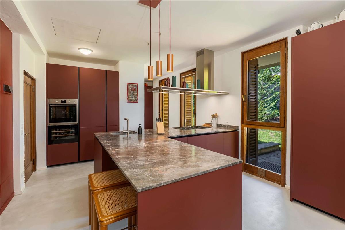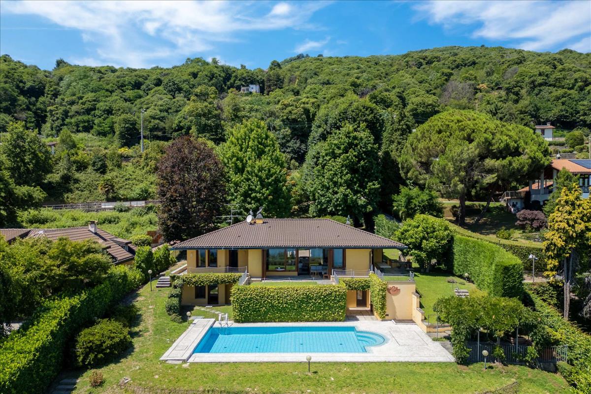 Panorámás, privát környezetben kínálunk eladó modern villát Lesa dombjain, kilátással a tóra, egy privát parkban, mintegy 3 700 m²-es területen. Az ingatlan a Maggiore-tó egyik legexklúzívabb lakóövezetében található, néhány kilométerre a központtól, ideális hely azok számára, akik a nyugalmat, a magánéletet és egy reprezentatív otthont keresnek. A mezzanine szinten a tér integrált kényelmét szolgáló elrendezés jellemzi. A nagy nappaliból panorámás ablakokon át kilátás nyílik a tóra, és az étkezőhöz kapcsolódik. A konyha mellett szomszédos munkaterület vagy dolgozósarok található. A mesterhálószoba fürdőszobával rendelkezik. A második hálószoba fürdőszobával és walk-in gardróbbal vár. Kényelmes vendégfürdőszoba áll rendelkezésre. A földszinten található egy tágas nappali kandallóval. A harmadik hálószoba fürdőszobával. További konyha ideális vendégek vagy személyzet részére. Tanulmány, technikai helyiségek és különböző tárolóhelyiségek (mosoda, tárolás stb.) találhatók. Külső területek és kényelmi elemek: privát medence napozóterasszal. Panorámás, teraszos kert mintegy 3 700 m². Pergola az árnyékolt területért, ideális grillpartikhoz a medencénél és a tó kilátására nyíló teraszokon. Kettős fedett garázs és tágas parkoló. Riasztó és automatizált biztonsági rendszer gondoskodik a kényelmiről. Ez a villa Lesa településen eladó, tökéletes első otthon vagy nyaralás céljára. A Maggiore-tóra nyíló lenyűgöző kilátás és a tágas belső és külső terek pedig a családok számára is ideálissá teszik. Hitel.hu - Hasonlítsa össze a bankok lakáshitel ajánlatait