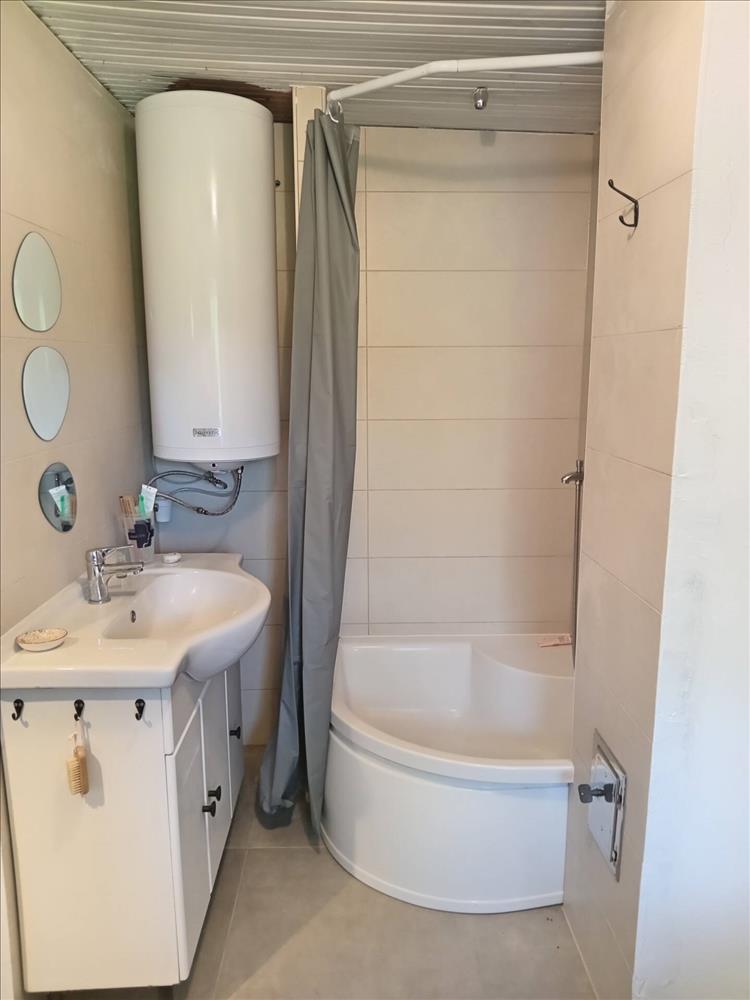 -A felső szinten található hétvégi ház alapterülete: 35 m2, melynek helyiségei: közlekedő, konya és zuhanyzó egy légtérben, (igény esetén, a zuhanyzó tolóajtóval leválasztható), egy hálószoba, kamra, wc. a szobához egy 4 m2-es erkély kapcsolódik.