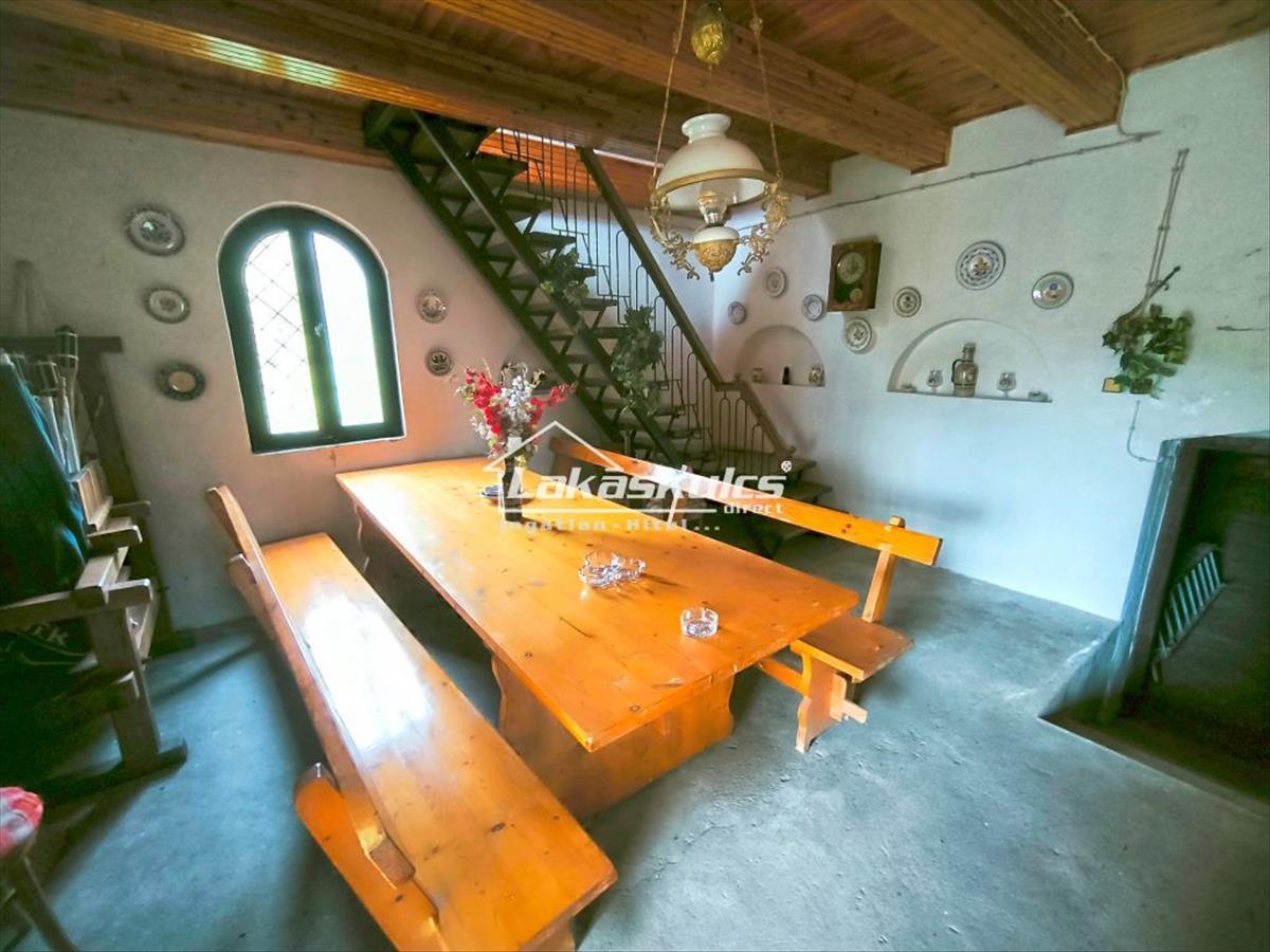 alsó szint: boltíves tornác, présház / étkező ( 25 nm), konyha (14 nm), 10 m x 2, 7 m-es boltíves pince (száraz)