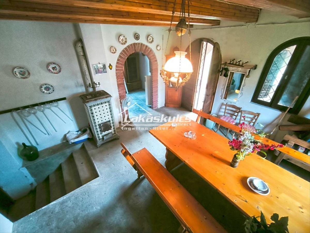 alsó szint: boltíves tornác, présház / étkező ( 25 nm), konyha (14 nm), 10 m x 2, 7 m-es boltíves pince (száraz)
