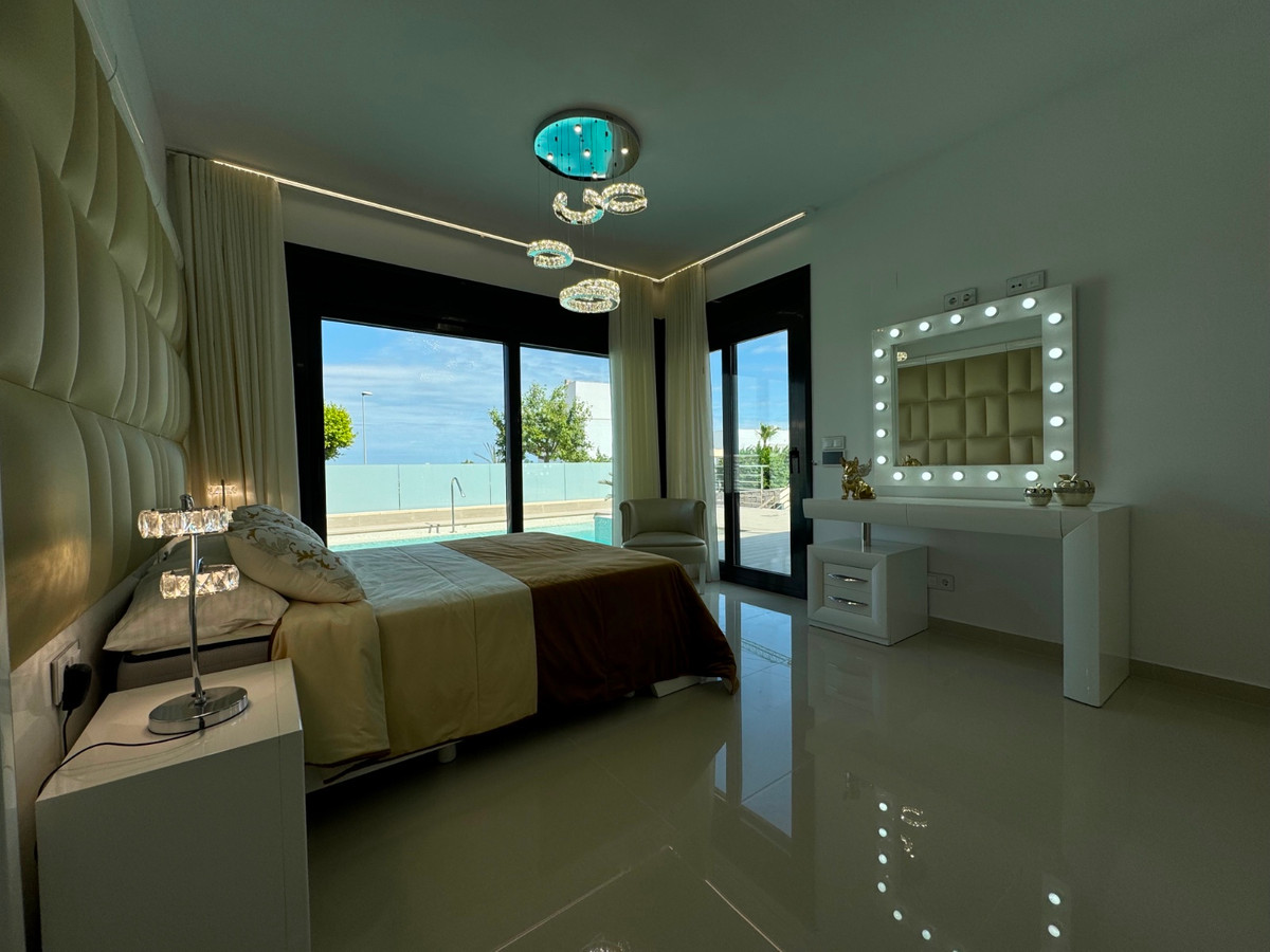 Ez az újonnan épült luxus villa 5 tágas hálószoba és 4 modern fürdőszoba, gondosan elrendezve két emeleten és egy pince, minden zökkenőmentesen kapcsolódik egy praktikus lift és egy elegáns üveg lépcső puha belső világítás. a pince kifejezetten szórakoztató, és tartalmaz egy játékszobát (biliárdasztal és futballasztal), party szoba teljes konyha, két további hálószoba, két tároló és egy teljes fürdőszoba. a földszinten áll egy nyílt terű nappali és étkező központi konyhával, egy sziget, egy nagy hálószoba ensuite fürdőszobával, valamint egy közüzemi szoba és vendég wc. Az első emeleten található két nagy hálószoba, két további fürdőszoba és a privát erkélyek. a legfelső emeleten egy látványos 70 m ² -es szolárium nyílik lélegzetelállító panorámás kilátással. Prémium jellemzők és interfész a villa teljesen felszerelt légkondicionáló, központi fűtés és padlófűtés, és értékesítik teljesen berendezett tervezési munka, kivéve a személyes tárgyak. Luxus szolgáltatások közé tartoznak a motoros kanapék, vadonatúj matracok, pirolízis gőzsütő, kombinált hűtőszekrény / jégkészítő, napelemek és pellet tűzhely környezetbarát fűtés. a biztonság a legfontosabb, megerősített ablakokkal és ajtókkal, biztonsági kulcsokkal és szenzoralapú riasztórendszerrel. Kültéri Paradicsom Lépjen be a gondosan parkosított kertbe, saját medencével, vízeséssel, jacuzzival és hidromasszázzsal. a medence körül van egy buja zöld terület, egy zuhanyzó és egy nagy parkoló több autó. Elhelyezkedés - Bellavista Residencial Bellavista található a csendes és festői környéken San Miguel de Salinas és kínál néhány a legszebb kilátás nyílik a Costa Blanca. Található mindössze 7 km-re a gyönyörű strandok Orihuela, közel a legjobb golfpályák és egy nagy bevásárlóközpont az összes szükséges szolgáltatásokat, éttermek és üzletek, ez az ingatlan ideális azok számára, akik értékelik mind a természet és a nyugalom. Hitel.hu - Hasonlítsa össze a bankok lakáshitel ajánlatait