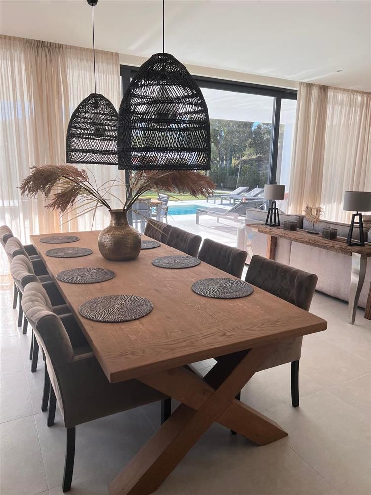 A nappaliból nagyszerű kilátás nyílik a medencére és a kertre, így az élet ebben a fantasztikus villában még vonzóbb és élvezetesebb.