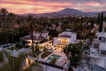 Ez az otthon egy modern hat hálószobás luxus villa eladó a Golf Valley of Marbella. Az otthon 600 m ² -es területet kínál 820 m ² -es telken, 125 m ² -es teraszokkal. a villa percekre fekszik Aloha Golf Los Naranjos és Las Brisas Golf Club, és gyors hozzáférést biztosít üzletek éttermek és Puerto Banús, ami ideális a vásárlók, akik szeretnék a magánélet és a kényelem.A villa hat hálószobával és egy svéd konyha Miele készülékek. a szálloda teljes padlófűtést is kínál Daikin AC-val és Airzone-val, valamint finn szaunával, hammával és nagy fürdőkáddal ellátott magán fürdőt. a moziban extra kényelmet, és két vendég wc és két privát parkolóhely teljes az otthon.