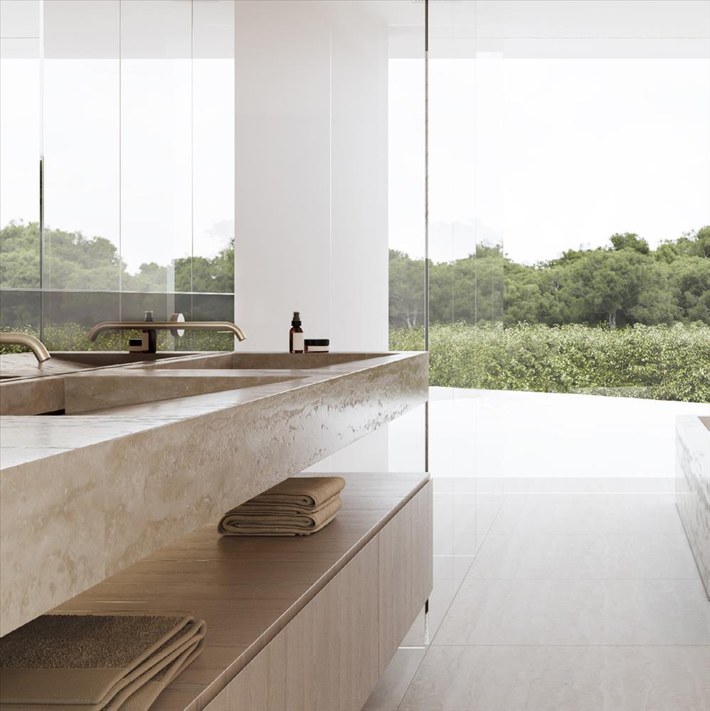 Ennek a villának a bejárata határozza meg a hangerőt az egész ház számára, egy nagy csarnokban, egy dupla magasságú mennyezettel, amely természetes fényben fürdeti a teret, köszönhetően a déli fekvésű tájolásnak. Ez a fenséges tér példázza a villa & apos; az elkötelezettség elegancia és a figyelem a részletekre.