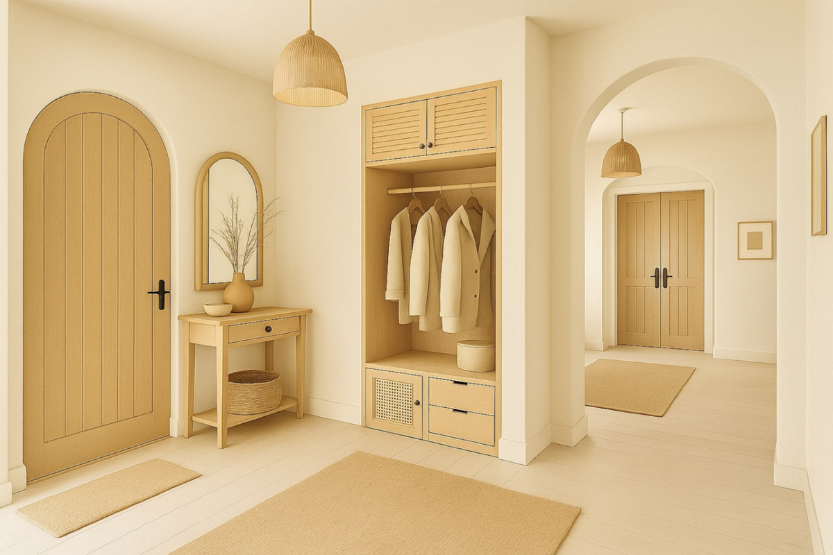 Az ingatlant lépcső nélkül tervezték, és egy figyelmes elrendezést kínál, amely garantálja a kényelmet és a magánélet tiszteletben tartását. Amikor belépsz a villába, egy elegáns előcsarnokba érkezel, praktikus ruhatárzal. a tágas nappalit elönti a fény, és egy nyitott teret képez, ahol a nappali, az étkező és a konyha zökkenőmentesen áramlik egymásba. a nagy ablakok közvetlen hozzáférést biztosítanak a napsütéses teraszhoz, a fa borítással, a parkosított kerttel és a medencével. a nappali mellett van egy hely egy mosógéppel, szárítóval és beépített ruhatárral.