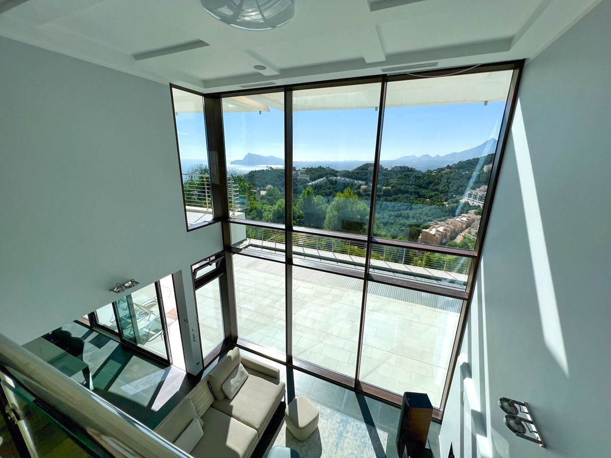 Ez a modern prémium osztályú villa lenyűgöző panorámás kilátás nyílik a öböl Altea egészen Benidorm található az elit zárt közösség Altea Hills 24 / 7 biztonsági, mellett luxus kényelmi, mint a teniszklub, golfpálya, jacht tengeri, és 5- csillagos spa komplexum. a villa található a legcsendesebb területén Altea Hills, ahol & apos; nem hallani az ap- 7. Amikor először megnézed a villát az utcáról, látod a kapitány és a kabinját, és a megnyúlt zöld és kék ablakokat, és rájössz, hogy úgy néz ki, mint egy vitorlás! a 24 m hosszú és 7 m magas homlokzat teljesen készült alumínium és fa nagyon jó termikus és technikai tulajdonságokkal! Az alumínium kívül védi a fát a naptól, és a belsejében készült kanadai tölgy különleges dekorációs kezelés! a villa a tervező bútorait tartalmazza: Villeroy és Boch, Duravit, Rolf Benz. , Teljesen berendezett, és készen áll a beköltözésre! a ház összesen 323 m2 épült egy 988 m2 telken, és eloszlik négy szinten csatlakozik egy belső lépcsőház és egy lift hat fő részére.