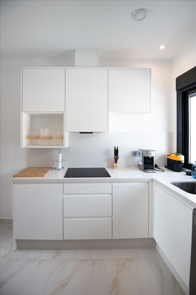 A ház egy tágas és világos nappali, hogy folyik a nyitott konyha - egy meghívó hely mind a mindennapi élet és a szocializálódás. a nagy ablakok beengedik a napfényt és elhomályosítják a vonalat belül és kívül. a nappaliból az ajtók egyenesen kivezetnek a saját kertbe, ahol egy hívogató medence csillog a napon, és a tágas terasz hosszú, meleg estékre hívja Önt a nyitott ég alatt.
