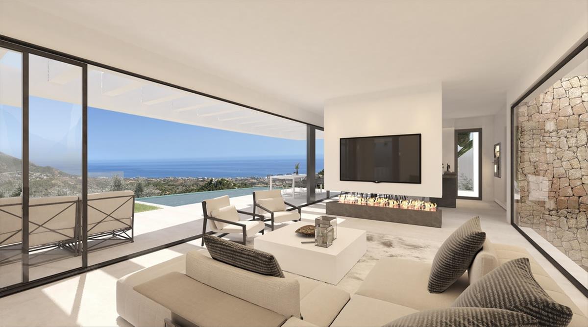 Új Villa projekt spectacular teljes panorámás kilátás nyílik a tengerre, hegyekre és völgyekre, végtelen medencével. a villa található Mijas Pueblo, ahol megtalálható minden típusú szolgáltatások.
