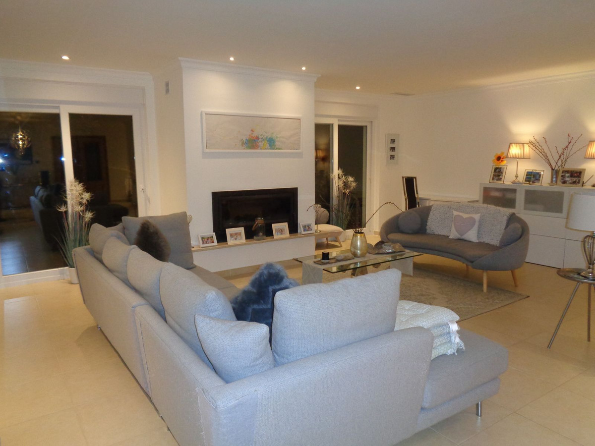 Double access doors welcome you to the beautiful Lounge with over 70m2 of space and full of light and a wonderful feel good factor. Ebben a szobában két dupla terasz ajtó és három ablak árasztja el a szobát fénnyel. a társalgóban a légkondicionáló berendezés teljes padlófűtéssel, meleg és hideg csöves légkondicionálóval és falra szerelt kandallóval várja vendégeit.