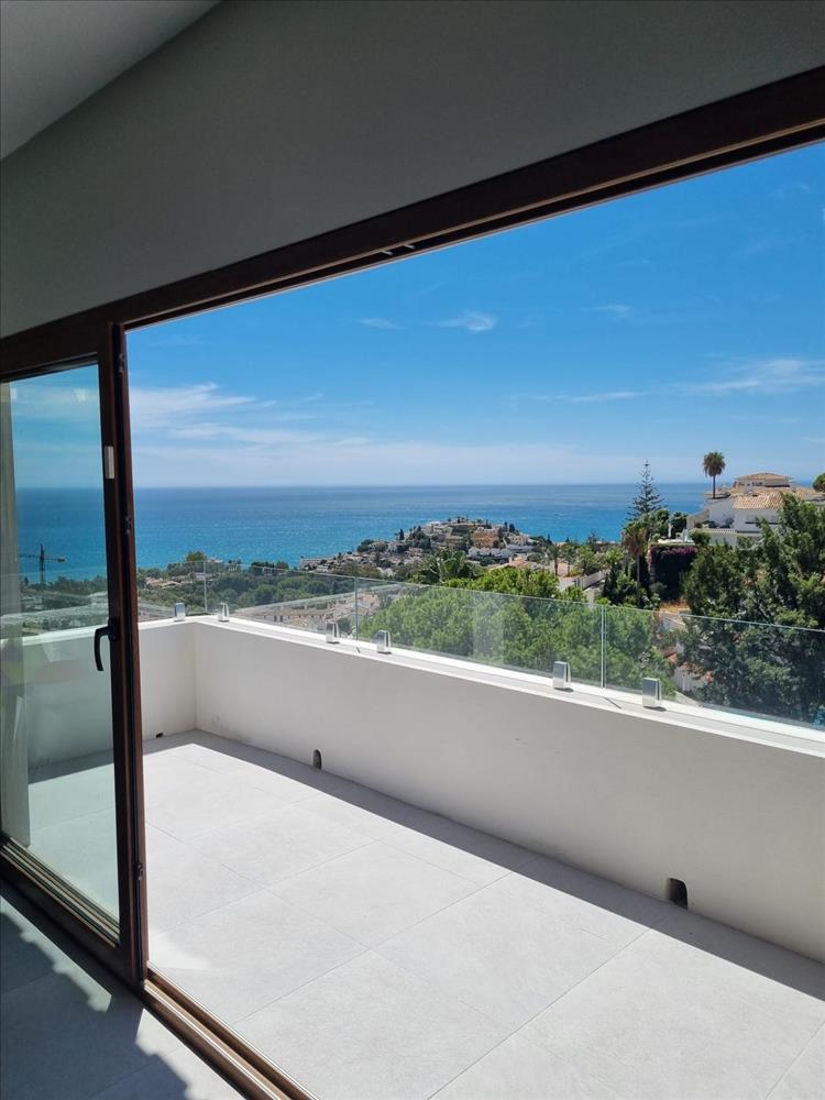 A gyönyörű tengerre és hegyekre néző, lenyűgöző felújított Villa Torremuelle-ben, Benalmádénában.