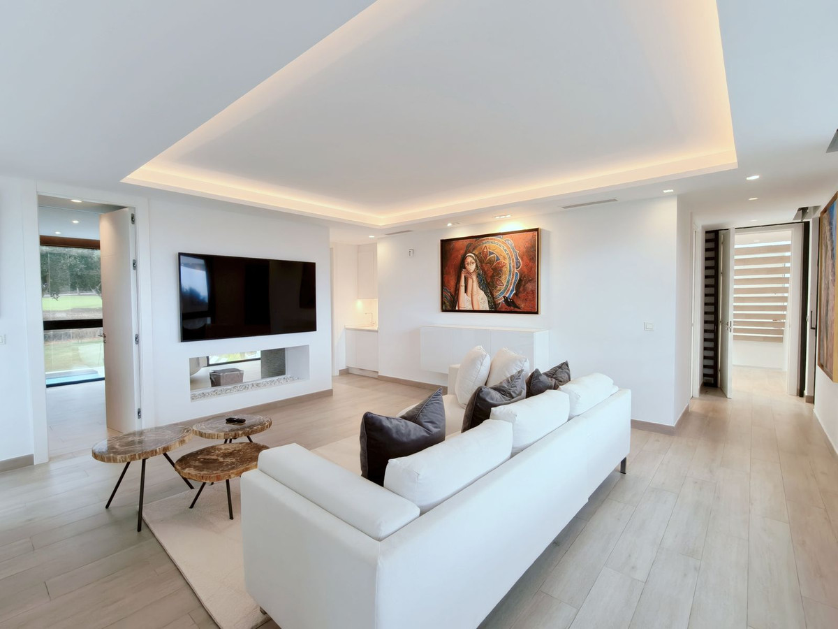 Az ingatlan több terasszal rendelkezik, amelyek panorámás golfkilátásokat, egy gyönyörűen parkosított kert fűtött saját medencével, és egy elegáns pergola, amely parkoló két autó. a tágas szobához tartozik egy privát társalgó, egy elegáns fürdőszoba fürdõkáddal és zuhanyzóval, valamint egy öltöző. Expanzív mennyezeti ablakok árasztják el a beleket természetes fénnyel, így zökkenőmentes kapcsolat jön létre a beltéri és kültéri lakóterek között.
