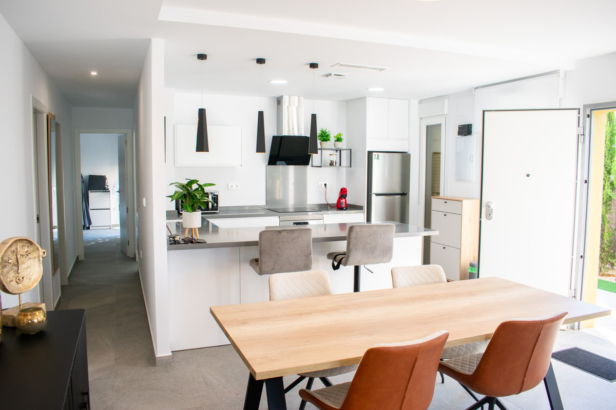Fedezze fel ezt a félig különálló villa, épült 2021, található a tekintélyes Vistabella Golf terület. a épített terület 100 m ² és a saját telek 264 m ², ez a ház egyesíti a kortárs tervezés, az energiahatékonyság, és a maximális kényelmet. Három tágas hálószoba és két elegáns fürdőszoba, a fő lakosztály áll ki a magánélet és kifinomultság. \ NA felújított konyha, amerikai stílusú szigettel, ideális helyet teremt az ételek és a szórakoztató, zökkenőmentesen integrálva a nyitott-terv nappali és a szabadban. Kívül talál egy bájos magán fűtött medence, tökéletes az év körüli élvezet, körülvesz egy parkosított kert és egy terasz, szabad kilátással, ideális pihenő vagy szórakoztató. Ezen kívül napelemeket is tartalmaz a nagyobb energiahatékonyság érdekében, egy nagy tárolóhelyiséget a lépcső alatt, amely a tetőhöz vezet, és egy AirZone rendszert, amely lehetővé teszi a hőmérséklet szabályozását egy központi éghajlat-ellenőrzési rendszeren keresztül. Ez magában foglalja a magánparkolást az objektumon belül és előzetes telepítés egy jacuzzi. a házat teljesen berendezték, mind kívül, mind belül. Egy ingatlan, amely stílust, kényelmet és fenntarthatóságot kínál, egy kiváltságos helyen, körülvéve a természet, golfpályák és csak pár percre a strandok Costa Blanca. \ N