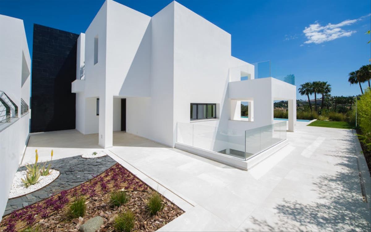 Vadonatúj designer villa kilátással Las Brisas golf, található a második sor a golfpálya egy emelt sarok telek 2500m2. Karbantartás ingyenes szinten lapos kertek bambusz kerítés, így teljes magánélet. a mélygarázs és az autóparkoló mélygarázshoz vezető bejárati ajtókon keresztül a vízesés, a garázs bejárata további 3 autóért. Hatalmas végtelen medence neon világítással és részleges nyugati kilátással a tengerre.