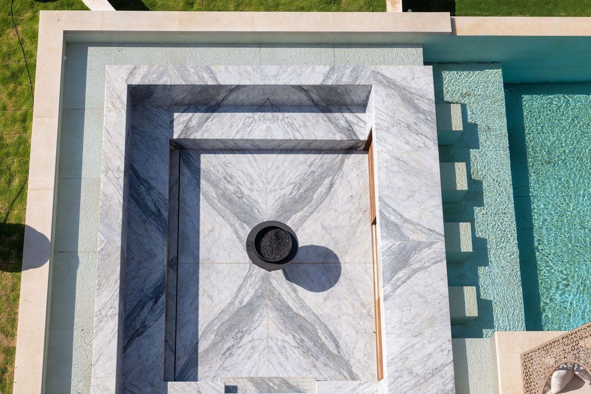 Ennek a szintnek a külseje a béke igazi oázisa, úszómedencével, Carrara márványozott fürdővel, megfelelő üléssel, nyitott levegős kandallóval, terasz területekkel, látványos barbecue-val és egy gyönyörűen parkosított kerttel.
