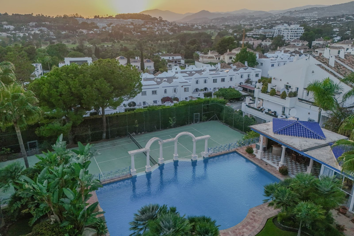 Nueva Andalucíában, Marbella egyik legkívánatosabb címén, ez a nyugati fekvésű lakóhely egy 3, 400 m ² -es telken található, és nagy, kifinomult megjelenésével kaptiválódik. 1727 M ² -es belső tere a dupla magasságú mennyezeteket, a bonyolult fákat és a kézzel készített márványokat mutatja be, tartós szépséget és kifinomult jellemt teremtve.