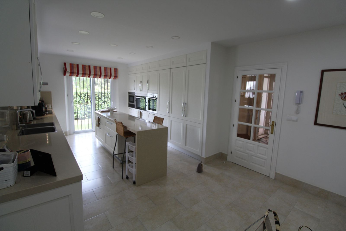 A földszinten van egy tágas nappali egy szomszédos étkezővel és kandallóval, egy hatalmas, teljesen felszerelt konyha spájzzal és hozzáférést a mosókonyha, 4 nagy hálószoba ensuite fürdőszobával és egy gyönyörű mór stílusú tea szoba mesés csempe és Nasrid friezes. a nappaliból megközelíthető egy nagy fedett terasz, amely étkezőként és a kertre és medencére néző kihűlő területként szolgál. a medence mellett van egy barbecue terület pergola és hammocks, tökéletes a nyárra.