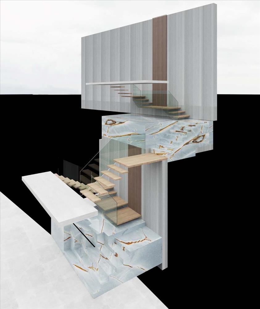 3-As szintű házak a hálószoba, amely magában foglalja a két nagy séta-gardrób, fürdőszoba zuhanyzóval és káddal, és egy külön wc. a nappali csatlakozik az étkező és a konyha, amely mögött egy nagy kamra. Minden szoba ezen a szinten expanzív üvegfalak. a hallban vendégfürdőszoba is van.