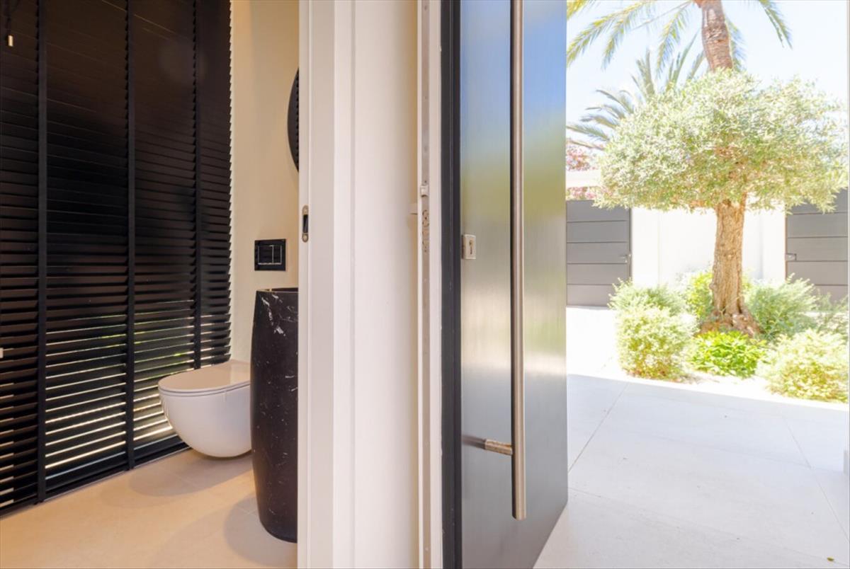 Közvetlen hozzáférés a nagy fedett és fedetlen teraszok, kiegészítő, hogy élvezze a kültéri élet kínál magánélet és egy hely, ahol élvezheti a látványos medence, napozófedélzet és trópusi parkosított designer kert. a szolárium terasszal mesés kilátás nyílik a Földközi-tengerre.