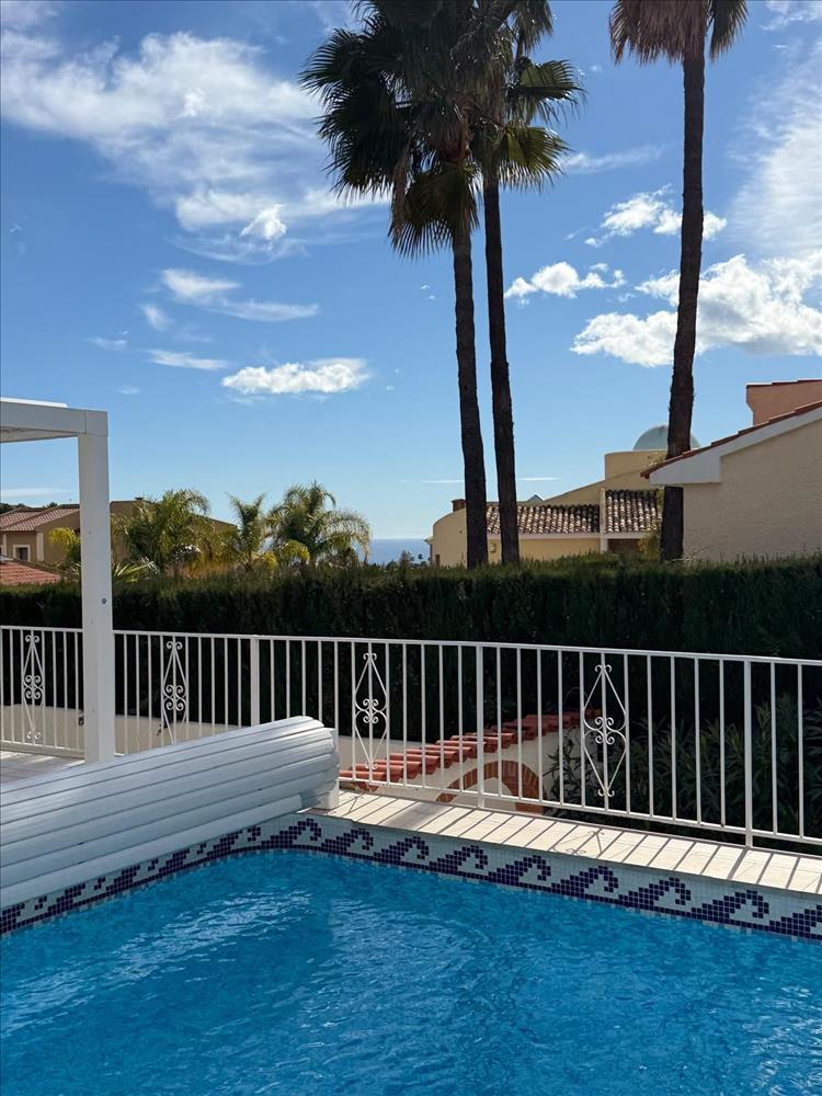 Felújított egyszintes villa La Nucía hegyvidéki kilátással és részleges tengeri kilátással.