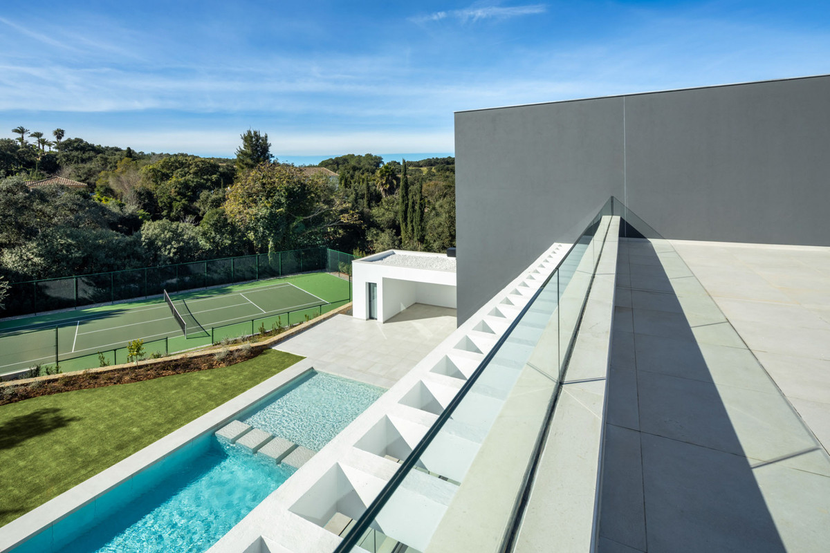 Casa Quijote jelenti a tökéletes egyensúlyt a kortárs luxus és építészeti kiválóság között, Sotogrande egyik legrangosabb területén. a híres építész, McClundie tervezte, ez a lenyűgöző ingatlan a teljes beépített terület 1, 240 m ², 862 m ² aprólékosan tervezett belső tér és 342 m ² teraszok kínál kiemelt kilátás nyílik a golfpálya.