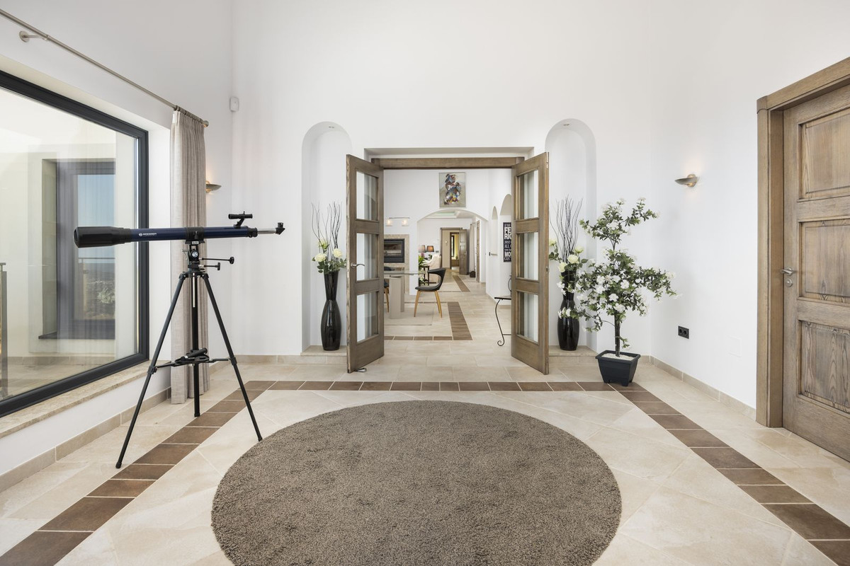 A földszinten, egy nagy bejárat vendégWC vezet egy hatalmas nyílt terű étkező és a nappali. Az egyik oldalon egy teljesen felszerelt modern konyha high-end készülékek, köztük két sütő, két hűtőszekrény, két fagyasztó, indukciós tűzhely, mosogatógép, mikrohullámú sütő, és egy speciális csap szűrt ivóvíz, közvetlen kerti hozzáférést. a másik oldalon, terasz ajtók nyitott egy nagy terasz üvegfüggönyökkel, tökéletes élvezheti a napfelkeltét és a naplemente az év. Az elegáns nappali színes led mennyezeti világítással, közvetlen terasszal, valamint a tetőtéri jacuzzival rendelkezik. a főlakosztály ezen a szinten egy lepukkant terasszal, egy luxus sétáló-gardróbbal, központi szigettel és egy erkéllyel ellátott ensuite fürdőszobával büszkélkedhet - ideális a forró fürdőben való áztatáshoz, miközben az andalúziai dombok fölött nyugszik a nap.