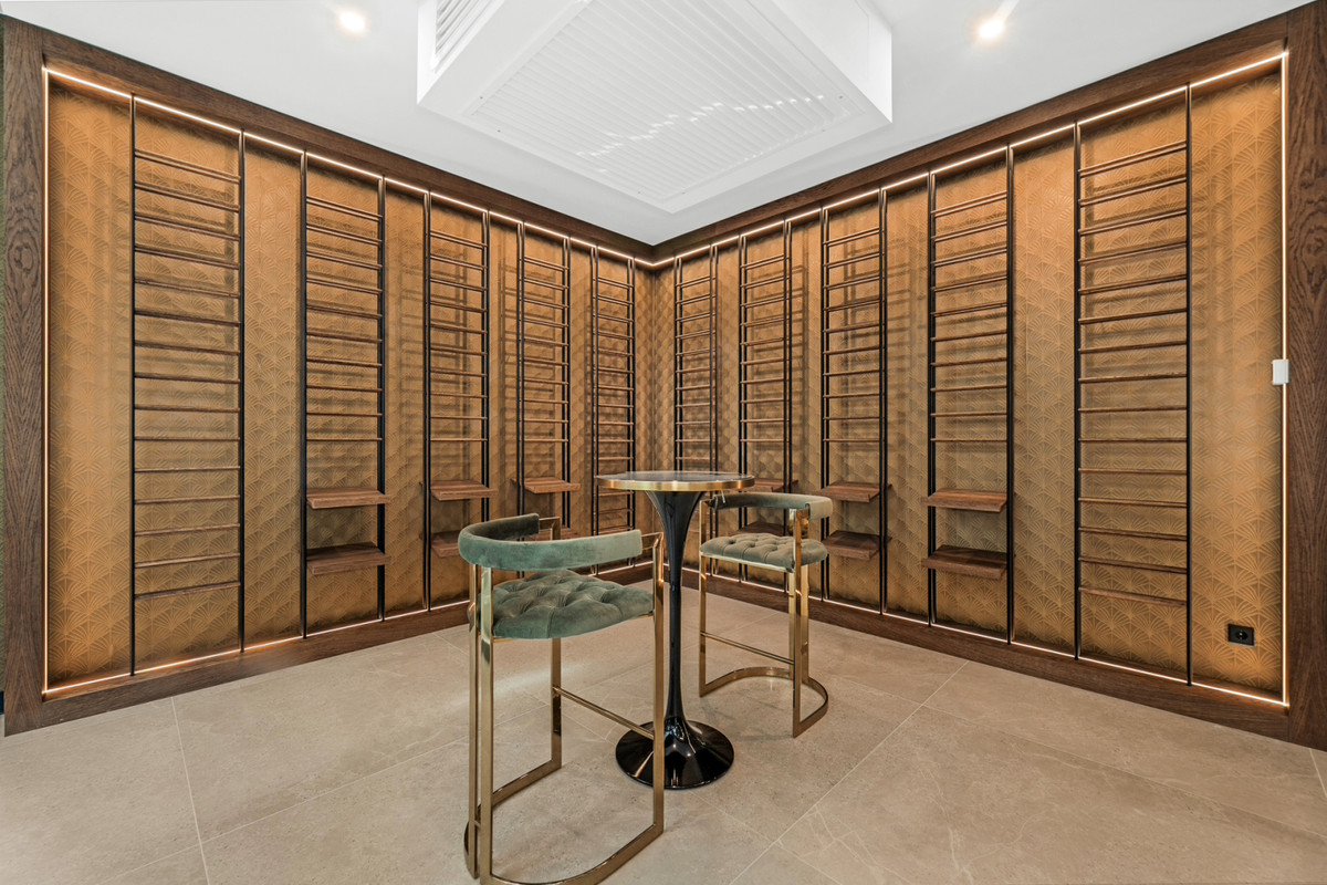 A fő lakosztály két fürdőszobával és két öltözővel rendelkezik. További szolgáltatások közé tartozik egy személyzeti szoba, mosoda, és egy garázs négy autó. a villa egyben a legújabb oled TV-vel és a bose hangrendszerrel is rendelkezik.
