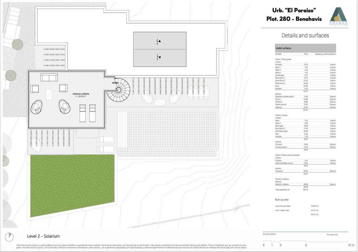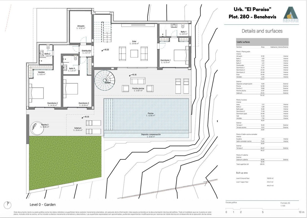 Megközelítőleg 404 m ² -es épített terület és több mint 600 m ² -es teljes használható tér, beleértve a teraszok, járdák és szolárium, az elrendezés már megfontoltan elrendezve, hogy kiegyensúlyozza a kényelmet, a magánélet és a szórakoztató.