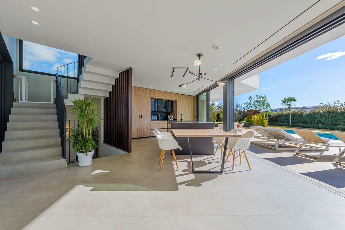 A legújabb technológiával felszerelt ingatlan egy otthoni automatizálási rendszert, fotovoltaikus energiát és aerotermikus fűtést tartalmaz, amelynek célja a maximális energiahatékonyság, kényelem és fenntarthatóság biztosítása.